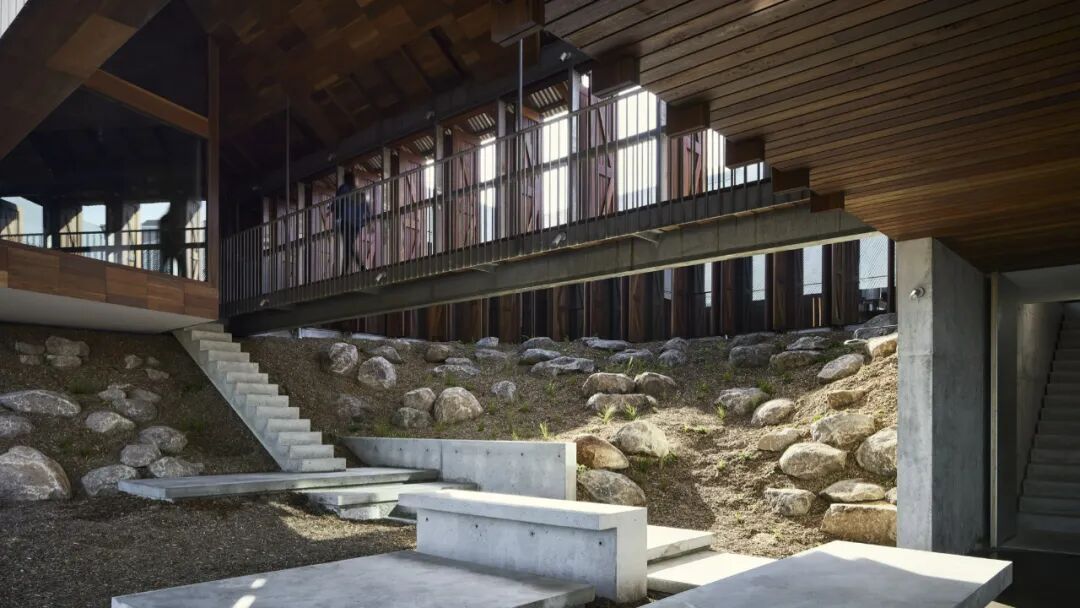 这个项目是一个建在山顶上的智障人士集体住宅,从这里能看到富士山。这座住宅就像一把大伞一样,是钢木混合结构支撑的宽檐,屋檐承接着山风,引导凉爽的空气进入高高的公共空间中。