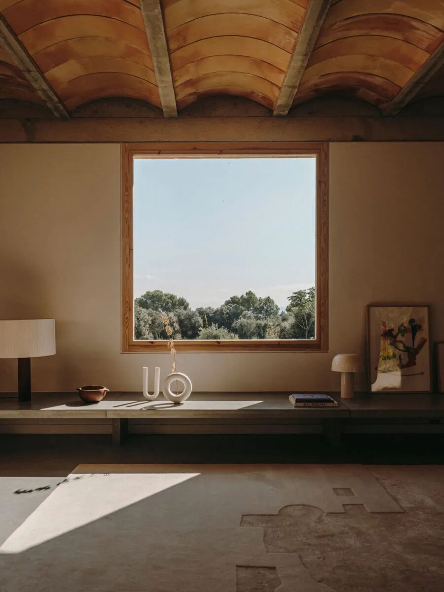 该项目所在地,是海洋、山脉和田野三种自然景观的交汇处,通往Casa Ter的车道通向一个封闭的庭院,该庭院由两个“L”体量(放置在地块的平坦一侧)产生。其中一个体积用作公共区域,而另一个是私人的,以一系列床和浴室的形式出现。