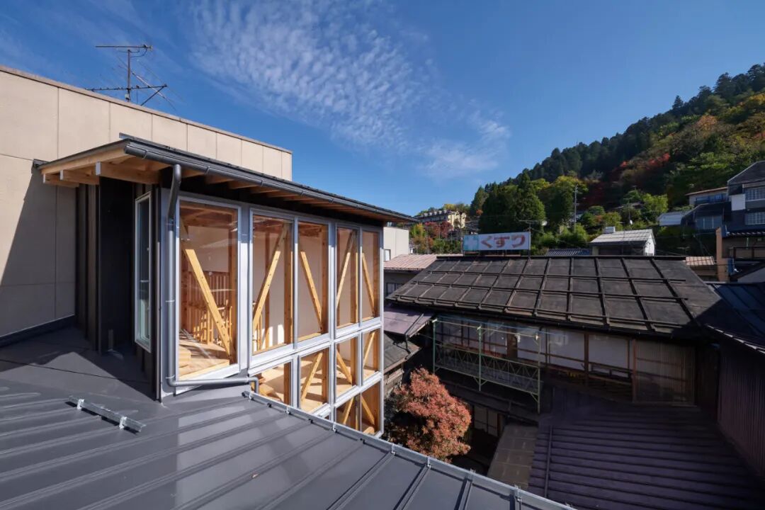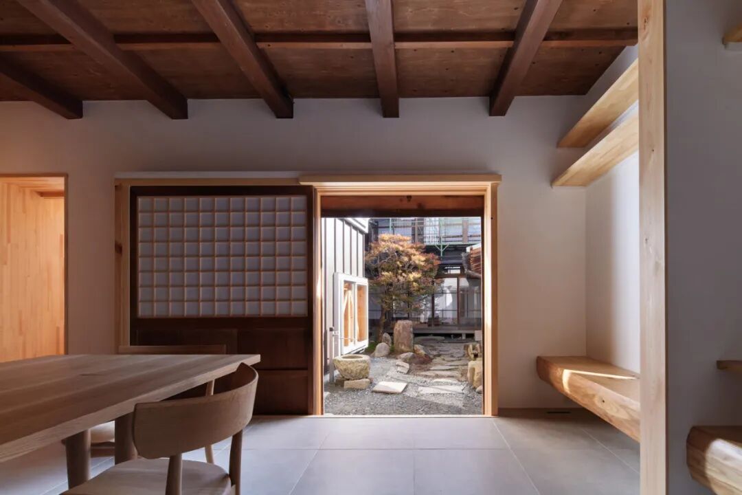该项目是基于反复扩建的背景下来建造而成,因为仓库周边的木制住宅及附属结构被拆除,重新利用建筑,把住宅的功能安放在了仓库内部。