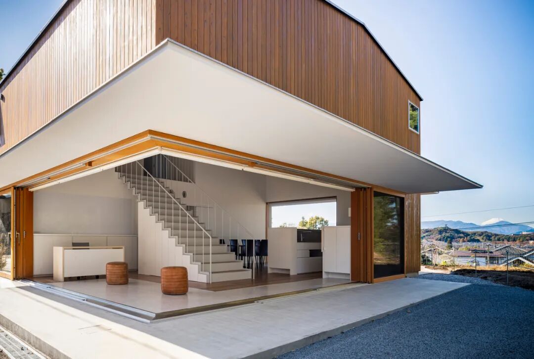 这个项目是一个建在山顶上的智障人士集体住宅,从这里能看到富士山。这座住宅就像一把大伞一样,是钢木混合结构支撑的宽檐,屋檐承接着山风,引导凉爽的空气进入高高的公共空间中。