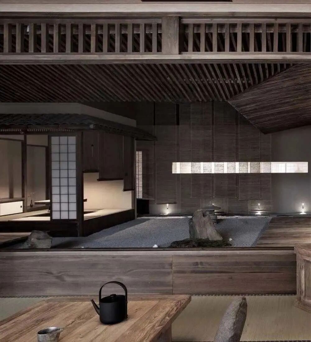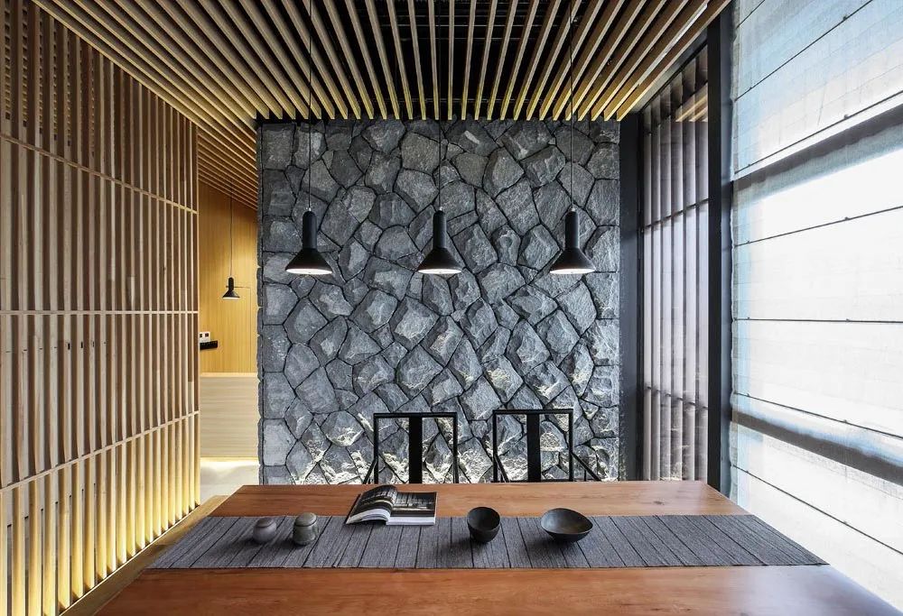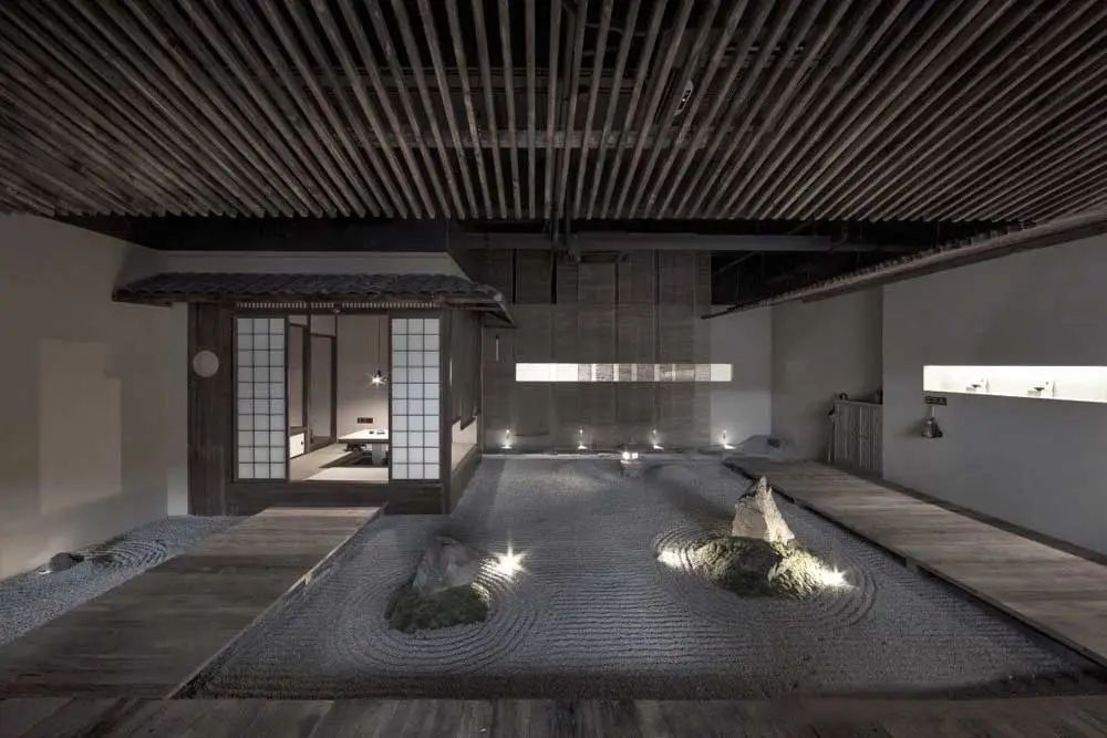寂静的和式空间至纯乃至孤绝,设计师以枯山水和一方院子点活空间,山与水的灵气让空间焕发出生的张力,营造出无一物中无尽藏,有山有水有楼台之意境。一杯茶一空间,因人的停留而千变万化,这就是空间与茶的魅力所在。