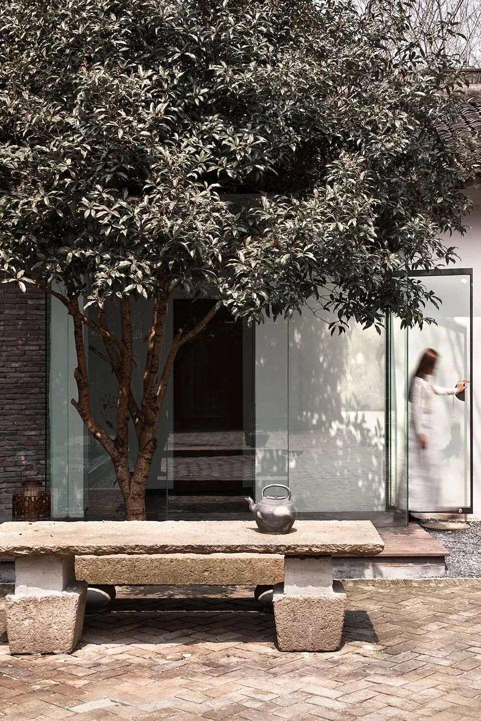 青砖白墙,没有过于浮夸吸睛的装饰造型,设计师着重于创建空间与空间、空间与外部环境的关联。先营造空间和流线,而后赋予空间一定的文化意义和精神内涵,力图为观者带来闲适的空间体验。简洁如斯,却又丰富于此。