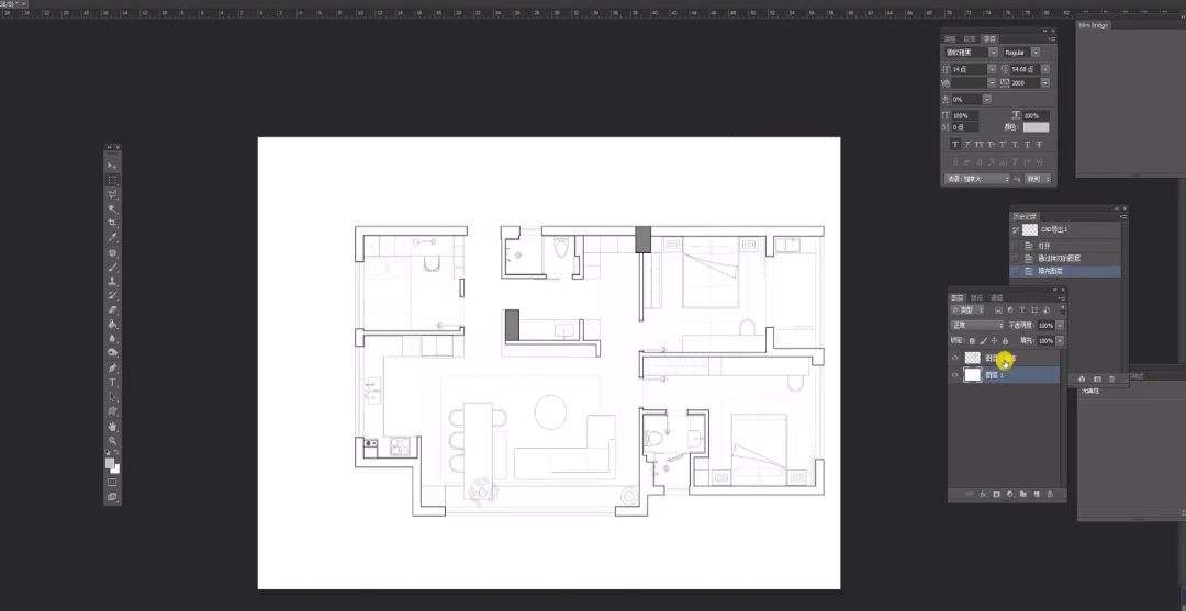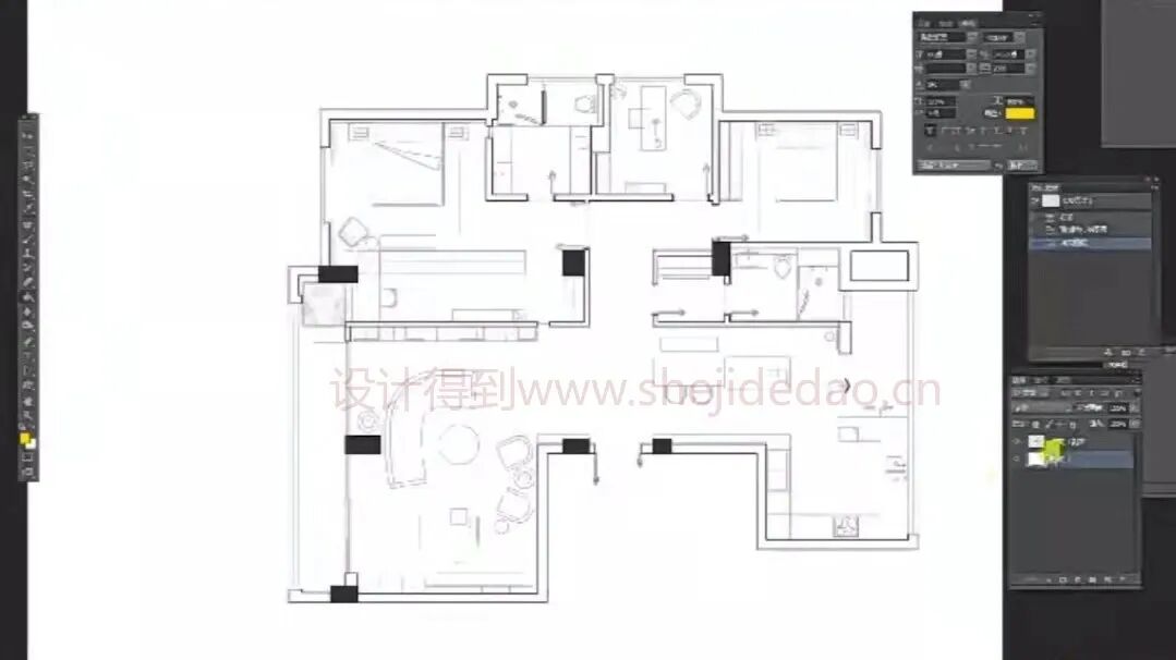 首先,导入pdf文件到ps中。清理杂线,当线型如果太细、够不清晰时,可以多复制几层后合并图层。