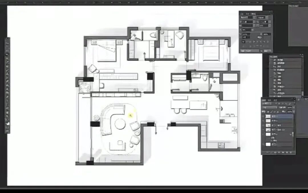 嗯~这种形式也可以,当然还有用SU的,用3D的......今天给你推荐一种有意思、有特点、快速、直观,甚至能收取更高设计费表现方式方案彩平(肯定有小伙伴在用~)