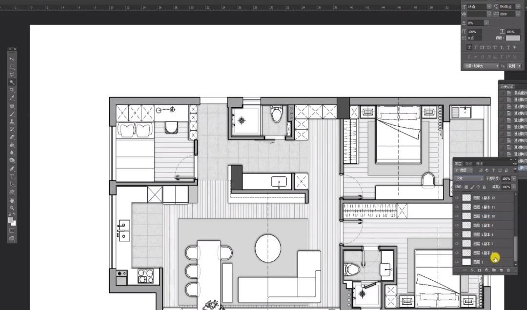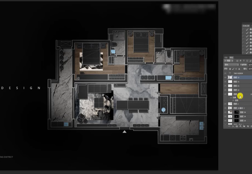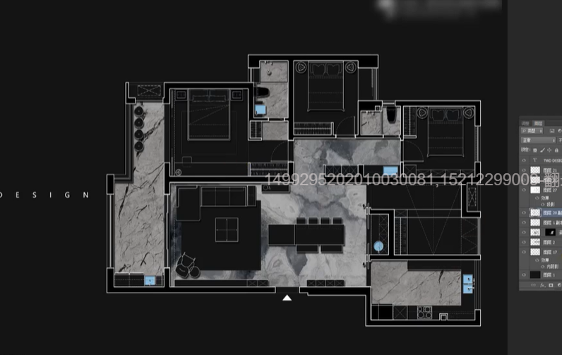 7、将CAD导出图2导入PS,在PDF格式框 中,调整为裁切图,分辨率为300,按V,将导出图2移至导出图1图层中,导入地材就做好了。