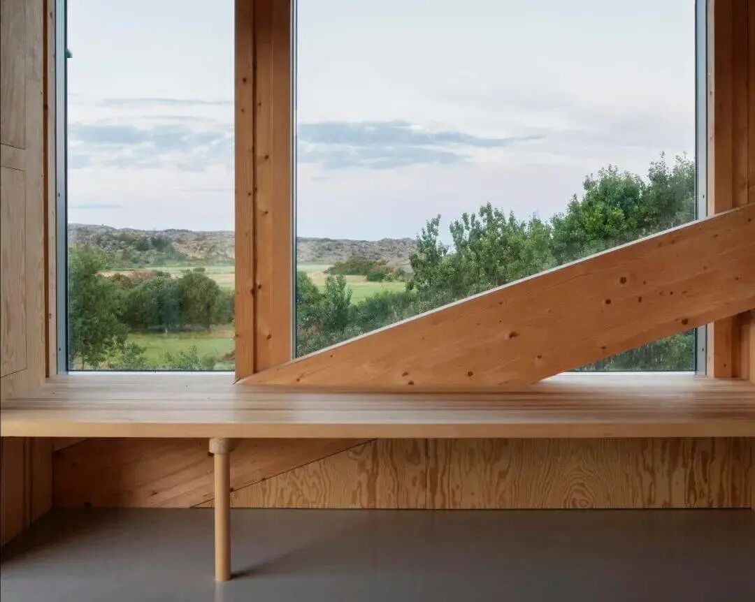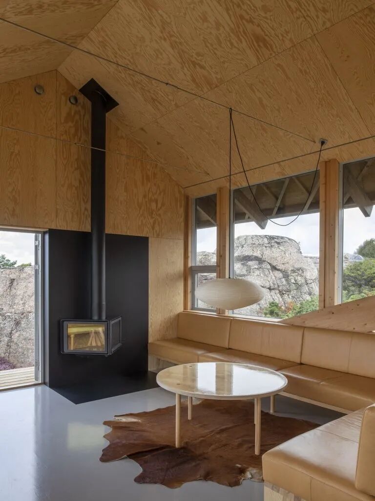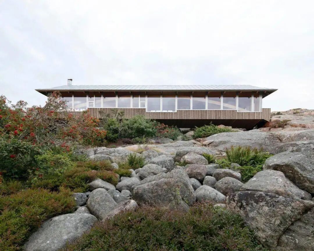 为了不破坏自然遗址的任何部分,这座房子被设计成一座跨越 29 米的桥梁,从一个基岩高原到另一个基岩高原。承重结构由两个叠层木拱组成,横跨12000多年前冰川留下的巨石。
