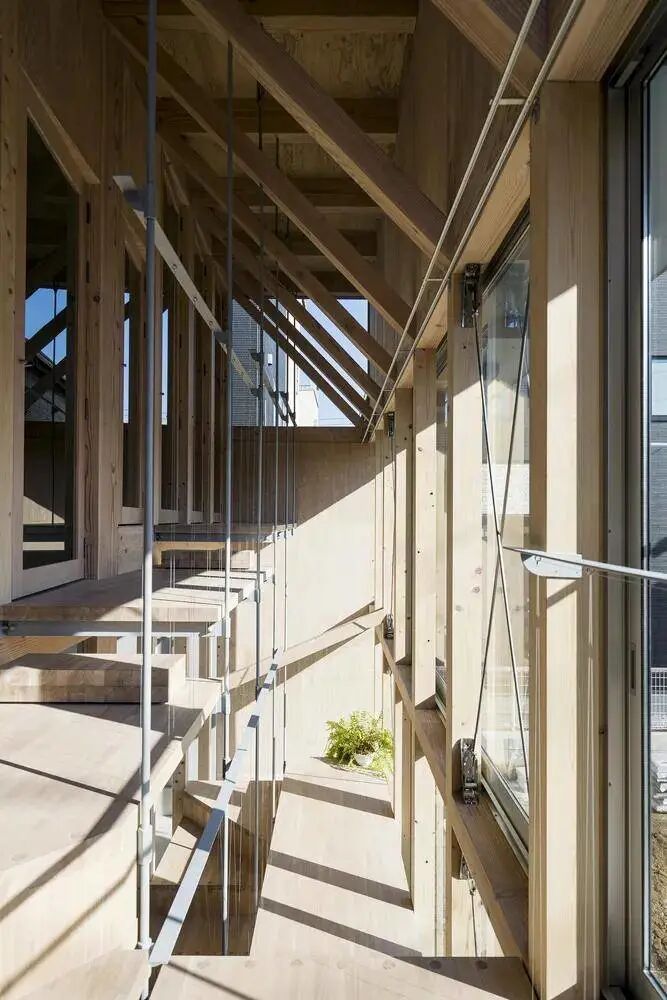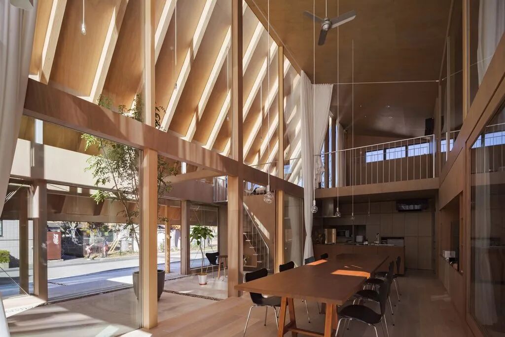 Shota Nakanishi Architects 的项目也得到了高度认可,采用单面倾斜的屋顶笼罩在街道一侧的阳台,底层是社交空间,而高层则是动态生活区。
