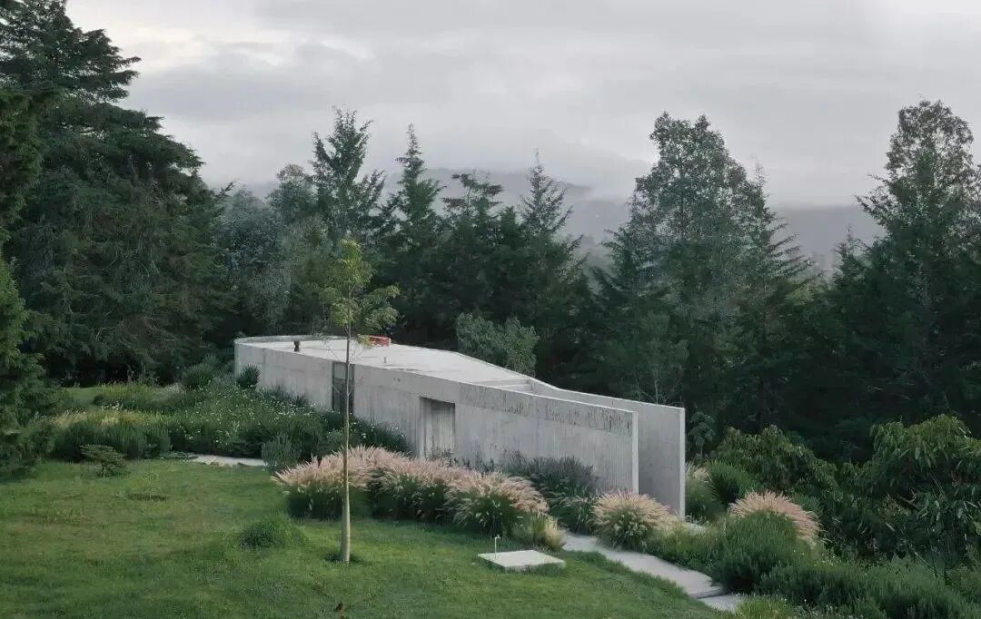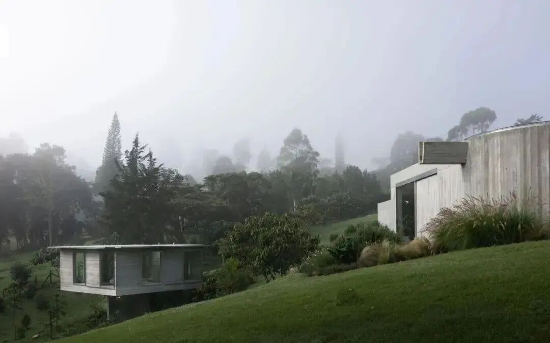 这座裸露着混凝土表皮的住宅坐落于哥伦比亚的一片郊区林地之中,依山而建,略显陡峭的草坡提供了良好的景观视野。设计师将建筑根据不同的功能属性,划分成相对独立的两个体块,并用花园将其串联起来,从而保持视觉上的整体连贯性。