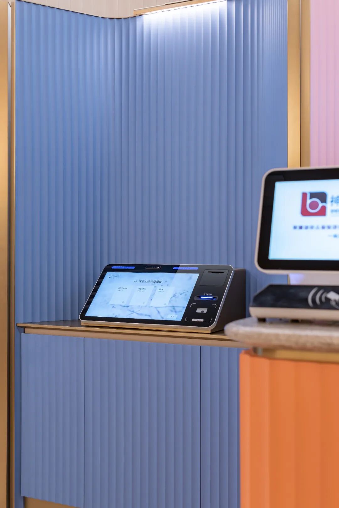前厅既有亲切员工驻守的传统接待前台,也融入了可自助办理入住手续的智能前台。顺应了当下人对高效及私密的重视。