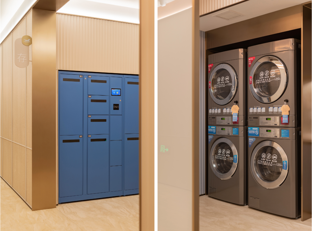 当下人越来越摆脱不了的充电宝,还有旅居过程中愈加显著的寄存和洗衣干衣需求,都在新一版的汉庭设计中,予以了深化与加强。