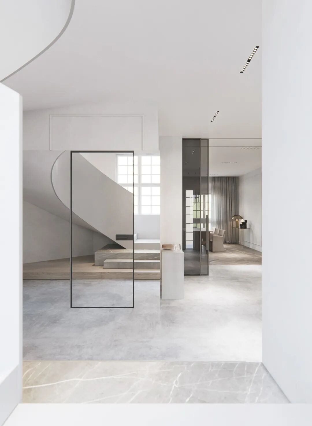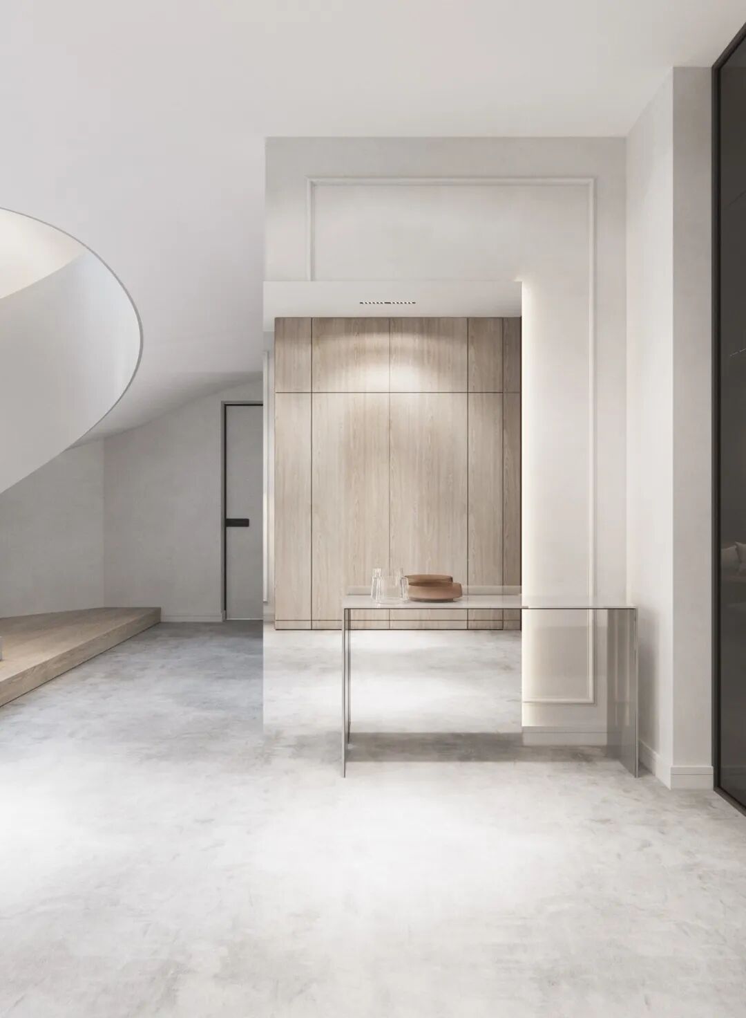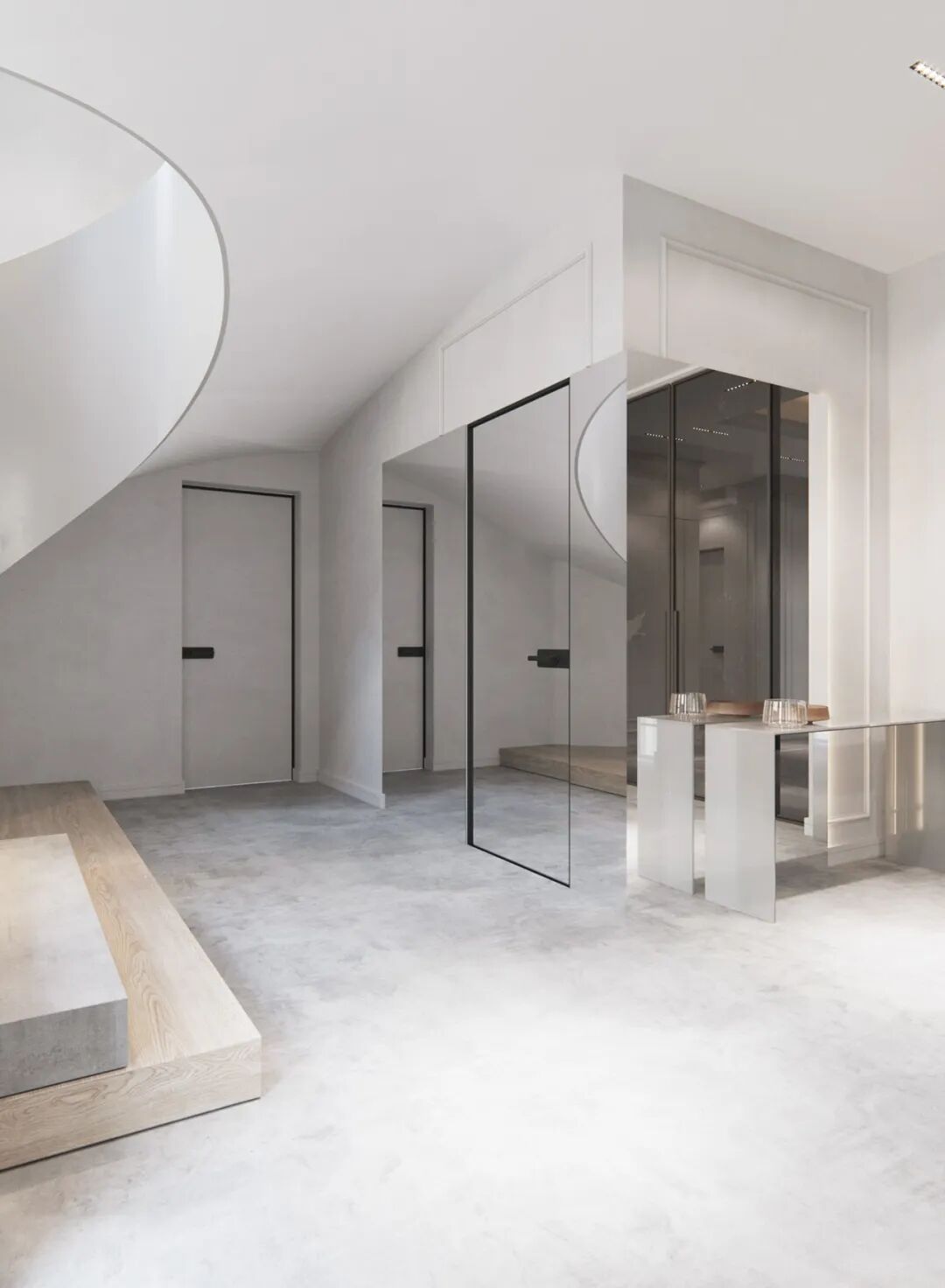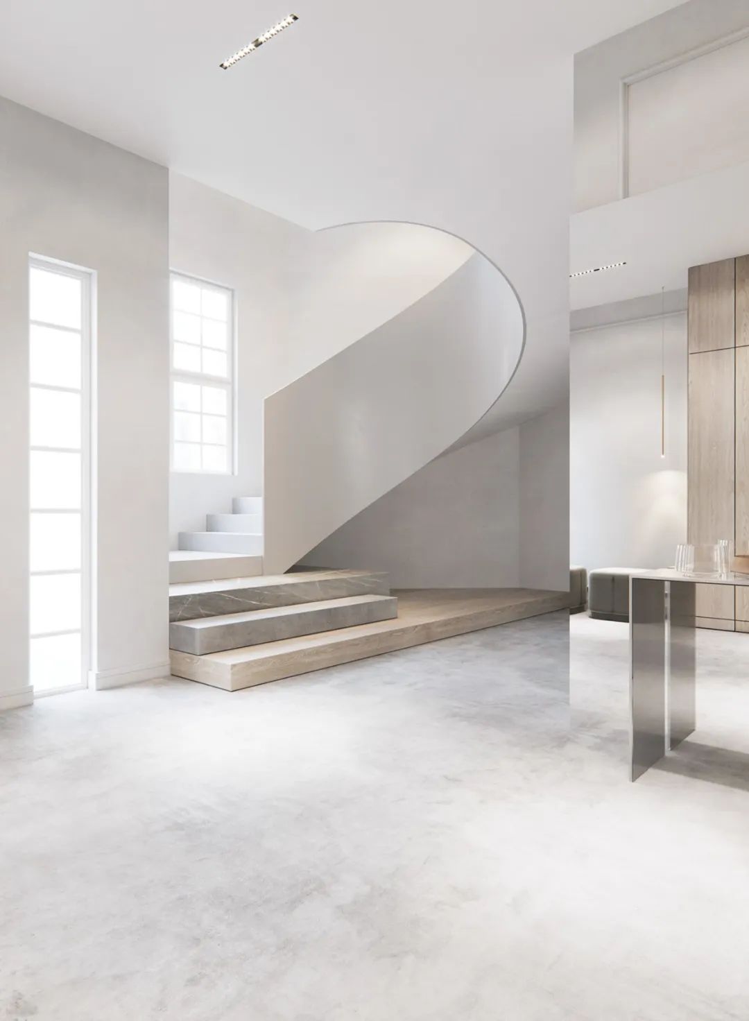 颇有艺术感的单色旋转楼梯,整体来看,也想一个流线型非常强的玉带,真的是非常美腻哦!