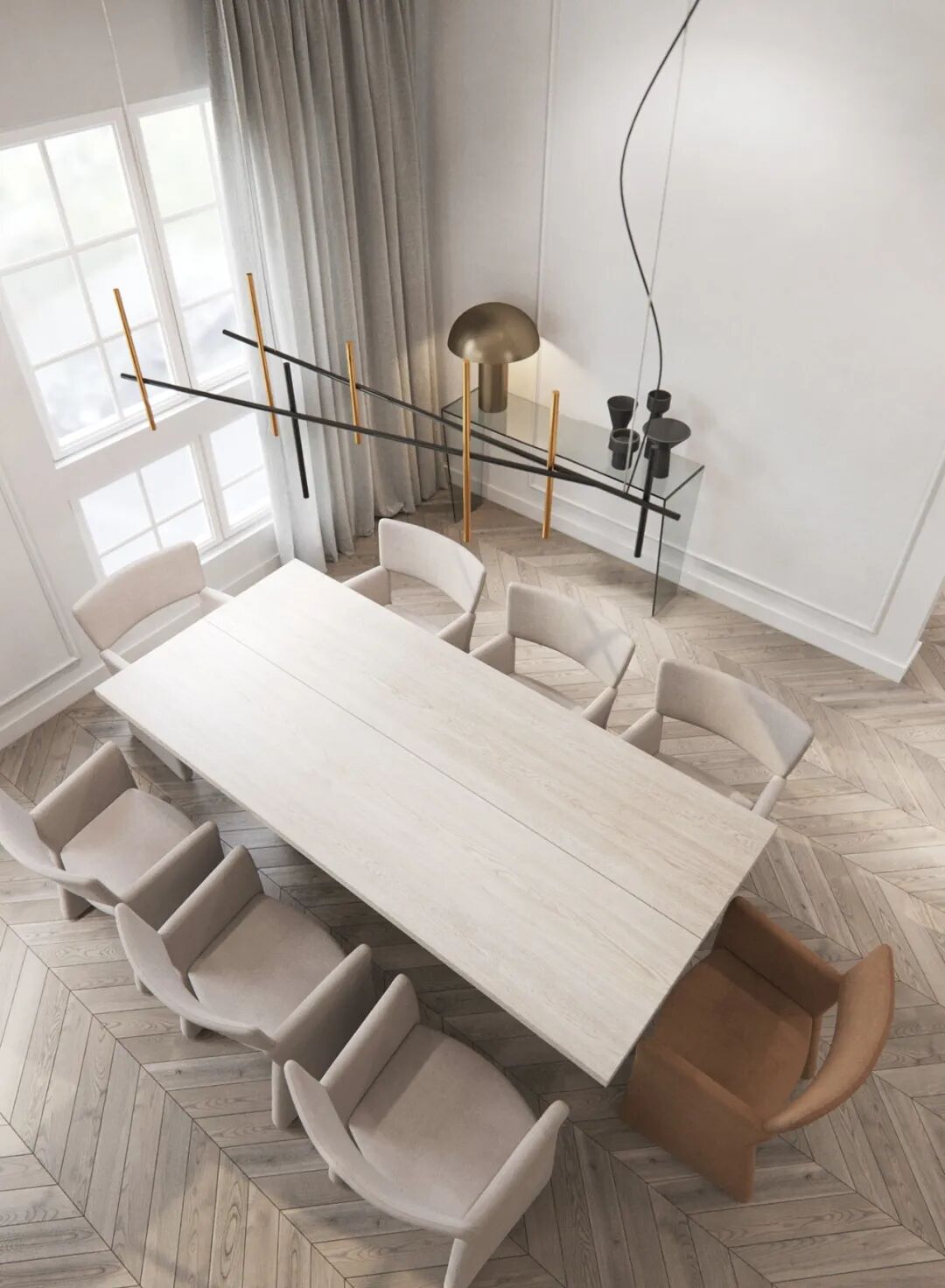餐厅木色和白色的搭配,清爽简洁,艺术吊灯很有特色。