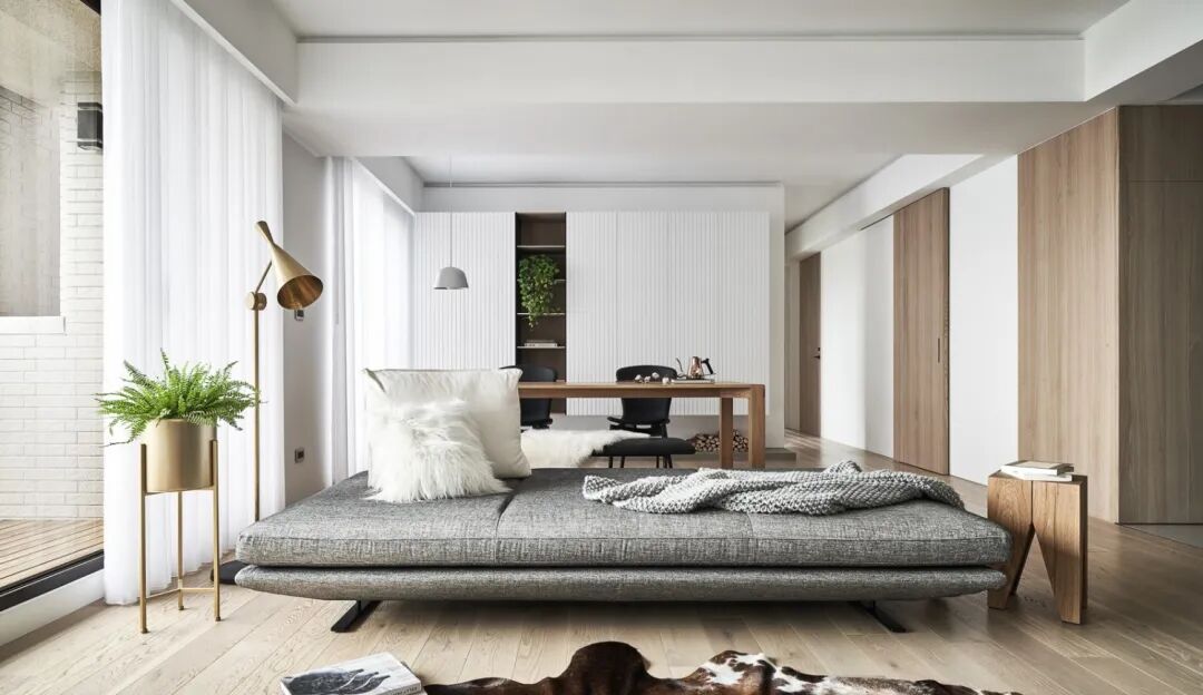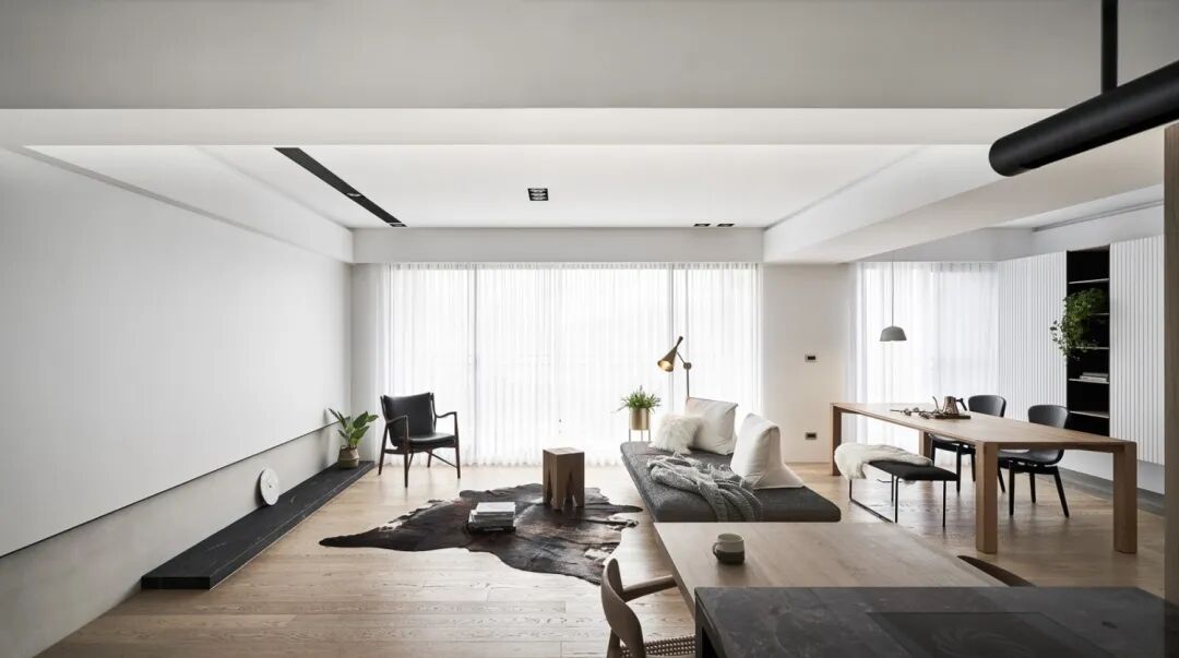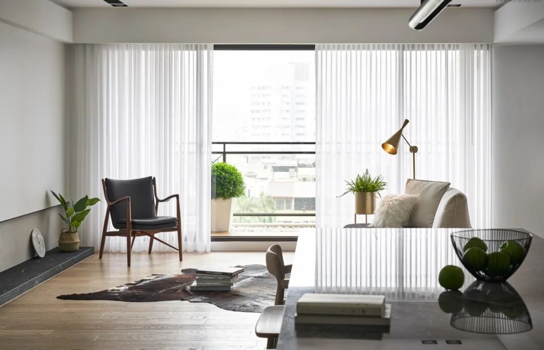 ▲整个客厅都以明亮的窗户与半透光的窗帘布置,带来的是一种通透大方的舒适气息。