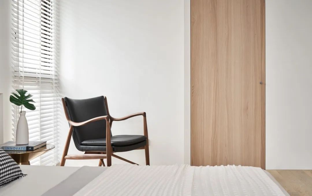 ▲卧室床头两侧分别书桌与休闲椅,让卧室打造成一个集了办公与休闲、睡眠功能一体的多功能区域。