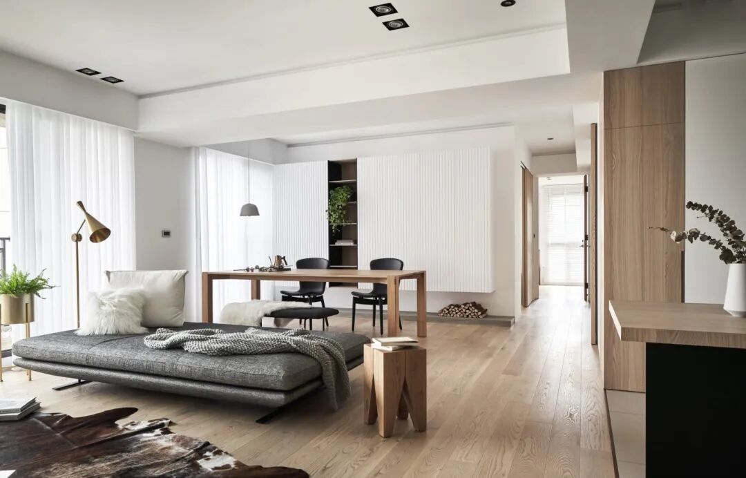 ▲过道侧边的木饰面,还有地面温润的木地板,简洁的天花造型,都让过道空间显得更加优雅舒适。