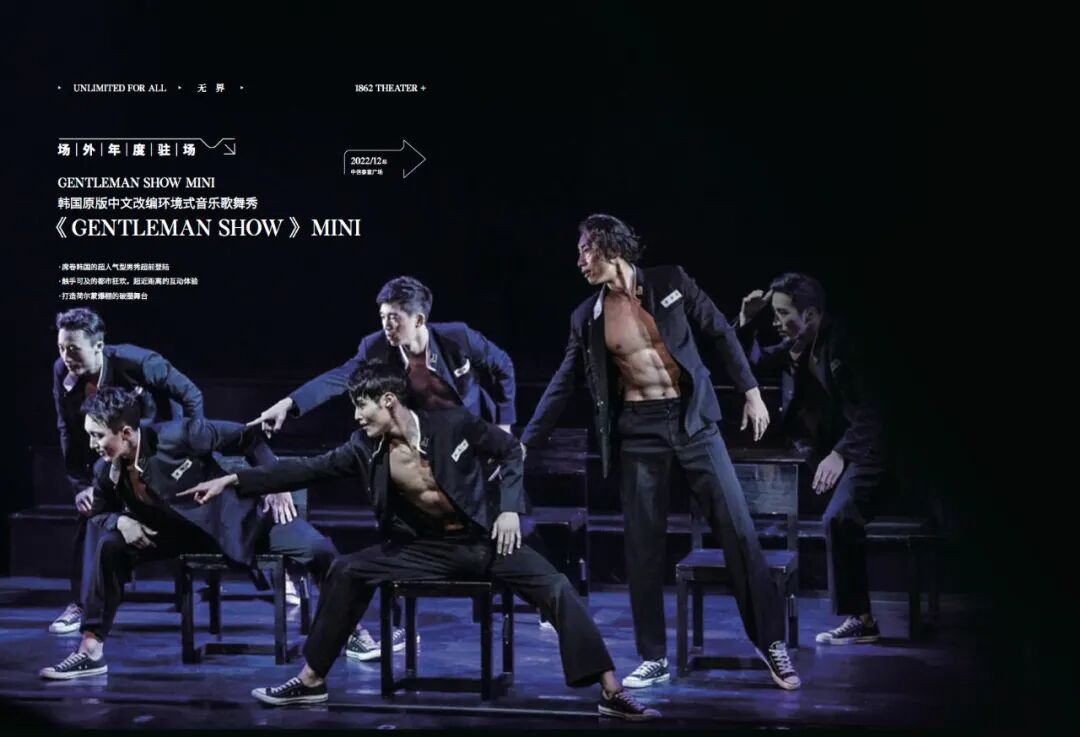 《Gentleman Show》MINI是1862第二个年度场外驻场项目,也是剧场月度驻场演出《Gentleman Show》的预热版,将提前登陆魔都。《Gentleman Show》MINI驻场版将致力于为观众实现区别于剧场版本的极致视听享受,利用场地灵活性向来宾提供超近距离的观演和互动体验。该项目将有机结合韩国经典IP与中国本土特色,使两者碰撞、交融,打造国际文化深度融合的精品力作。优秀素人演员们将经历高标准魔鬼训练的奇迹蜕变,全面诠释新时代男性魅力,重新定义个性、阳刚与担当。