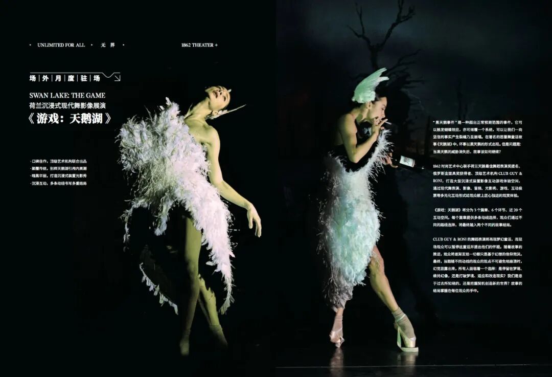 《游戏:天鹅湖》是1862联手荷兰天鹅最佳舞蹈表演奖提名、俄罗斯金面具奖获得者的顶级艺术机构Club Guy & Roni,共同打造的大型沉浸式装置影像互动游戏体验项目,也是1862因疫情原因两次推迟的驻场项目。该项目将通过现代舞表演、影像、音频、光影秀、游戏、互动投票等多元化互动形式为观众献上匠心独运的观赏体验。《游戏:天鹅湖》将分为3个篇章、6个环节、近20个互动空间。最终,所有人面临着一个选择:是停留在梦境、维持幻像,还是打破梦境、适应和改造现实?我们是忠于过去所知晓的,还是把握契机创造新的世界?故事的结局掌握在每位观众的手中。