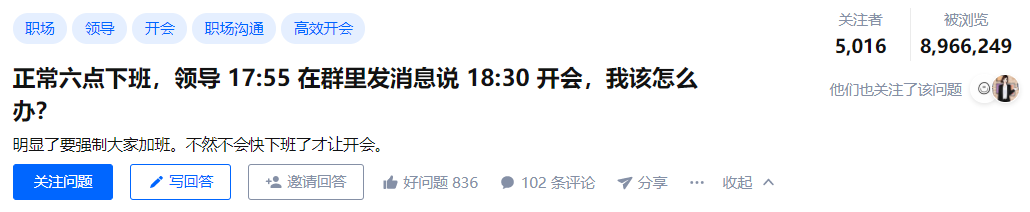 最新文章2023-07-08 18点下班,领导17:55 通知18:30开会,如何破? 正常18:00下班,领导17:55在群里发消息说18:30开会,该怎么办? 今天教大家几个怼回去的方法。 下次再遇到类似的情况,就把这篇文章直接甩给你的老板!每天一个离职小技巧,用过的都说好。 不过话说回来,请问作为产品经理,您有在18:00准时下过班吗? 文案来源知乎: https://www.zhihu.com/question/441394605/answer/1710866393 作者:allan,已授权转载。 最后,我建立了各大城市的产品交流群,想进群小伙伴加微信:yw5201a1 我拉你进群。 关注微信公众号:产品刘 可领取大礼包一份。 ··················END·················· 今日报告:艾瑞咨询发布《2022年中国云服务行业应用白皮书》,下载报告去公众号:硬核刘大 后台回复“云服务”,即可下载完整PDF文件。 申明:报告版权归 艾瑞咨询 所有,此处仅限分享学习使用,如有侵权,请联系小编做删除处理。 RECOMMEND 推荐阅读 SaaS入门,看这篇就够了 面试一对一辅导 手把手教你做产品经理 产品和运营的区别是什么? 点击“阅读原文” 查看更多干货 本文来自微信公众号“产品刘”(ID:chanpinliu880)。大作社经授权转载,该文观点仅代表作者本人,大作社平台仅提供信息存储空间服务。 TAGS: 产品公众报告群阅读 相关文章英赫日报 | 李宁 × 空…米兰时装周的异星来客,用结…米兰“MoLo”移动与物流…西班牙艺术家 Juan d…把小鸟画成美少女,她弃医从…这些鸡蛋包装不只是有趣,设…国产文具又炸了!晨光再造“…七点资讯 |《更衣人偶坠入…AlphaDraw筑绘通「…秦始皇的黑,是你不懂的黑。