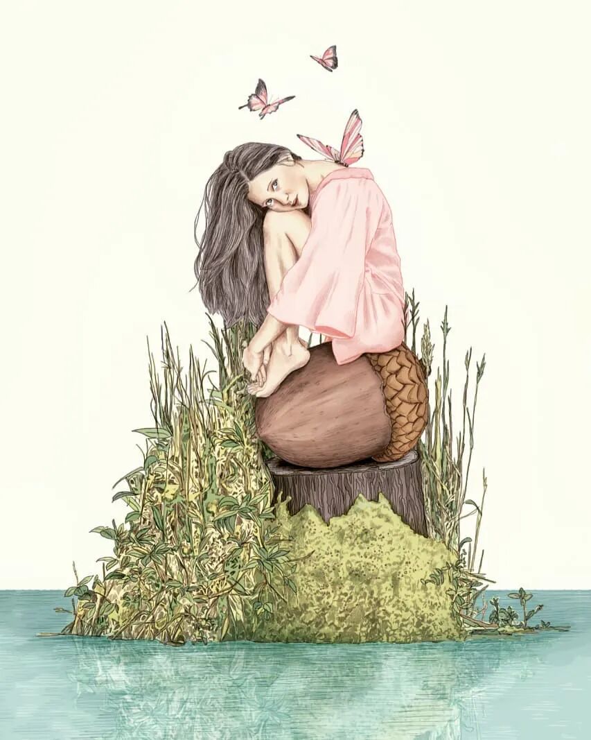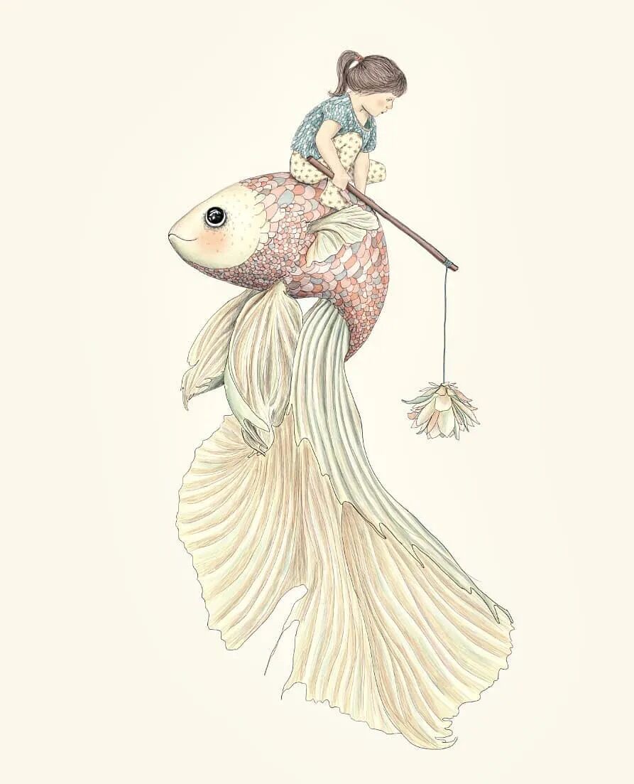 这位插画家从2001年就开始从事插画创作,她的插画作品主要以超现实题材为主,内容也聚焦在人与动物,人与自然之间,奇幻的场景加上怀旧的画风,将人们的视线牢牢地吸引住,每一幅插画作品,都像是一首音乐,让人们沉浸到一个十分梦幻又唯美的氛围中。