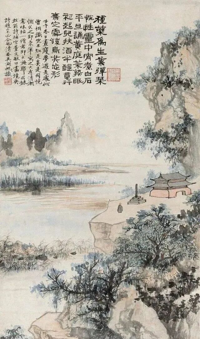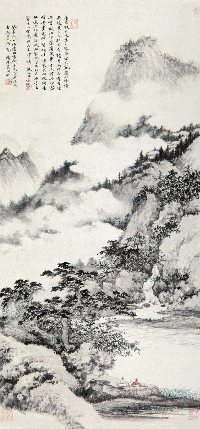 至于画苑派之盛行,始于宋徽宗时代,至清高宗以后,渐归淘汰。虽德宗末年时代,仍有画苑供奉存在,然已失却画学能力,今则早经消灭矣。文人派始于王维,画中有诗一语,最足说明此派之精神,其后如苏东坡米元章辈,类皆以绘画为文人余事。此派历年久远,绵延不绝。其中讲求规矩法度者,固不乏人,而不拘绳墨,机杼从心者,亦不在少数。至于作家派,当然居国画学上最重要之地位,凡一切之伟大发展,能造成文化上之价值者,俱为此派心血之结晶,亦即吾人所兢兢奋勉,冀能维持于不敝者。南派北派之分,系明人就唐宋之画以为区别,有谓南派为南人之画,北派为北人之画者,有谓南派用圆石法,北派用方石法者。两说虽俱非无因,而要皆末必为确论。总之画学一道,不宜多分派别,只求表现美德,即是艺术上绝好典型。取菁华,弃糟粕,融会而贯通之,是又研究国画家之同志所应共负其仔肩者矣。