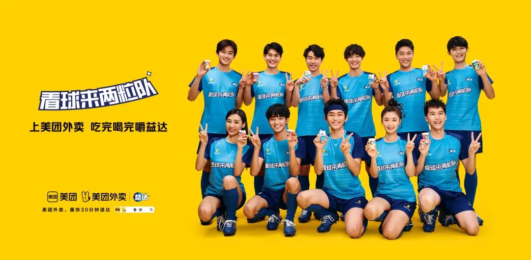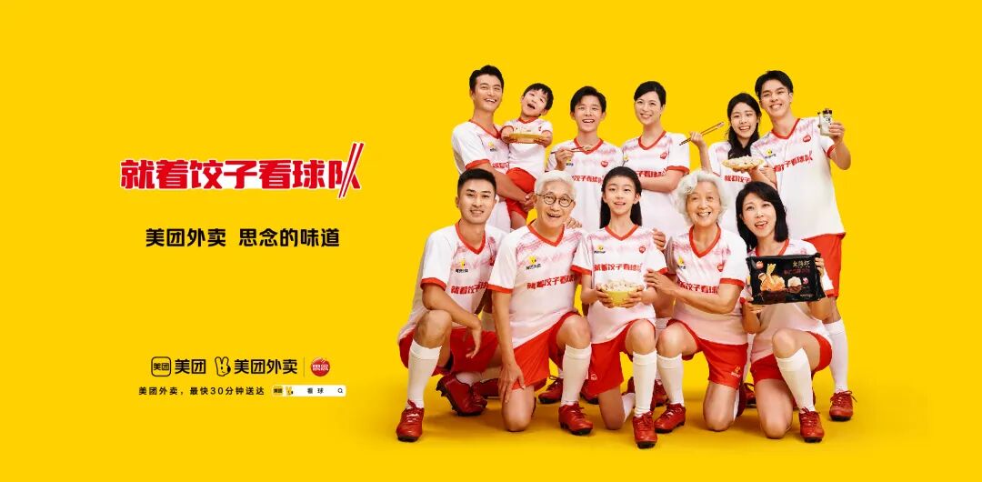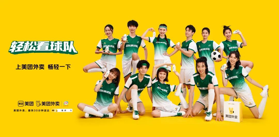 疫后时代,中国球迷在世界杯期间,更多选择宅家看球,点外卖吃夜宵自然也成了球迷熬夜看球的选择。美团外卖精准洞察球迷熬夜看球的刚需,联合18个品牌,赞助了18支球迷队,结合球迷语言,建立新的品牌沟通策略。