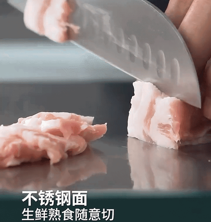 反面则是304特制的抑菌级不锈钢,切菜熟食料理,切过不打滑。