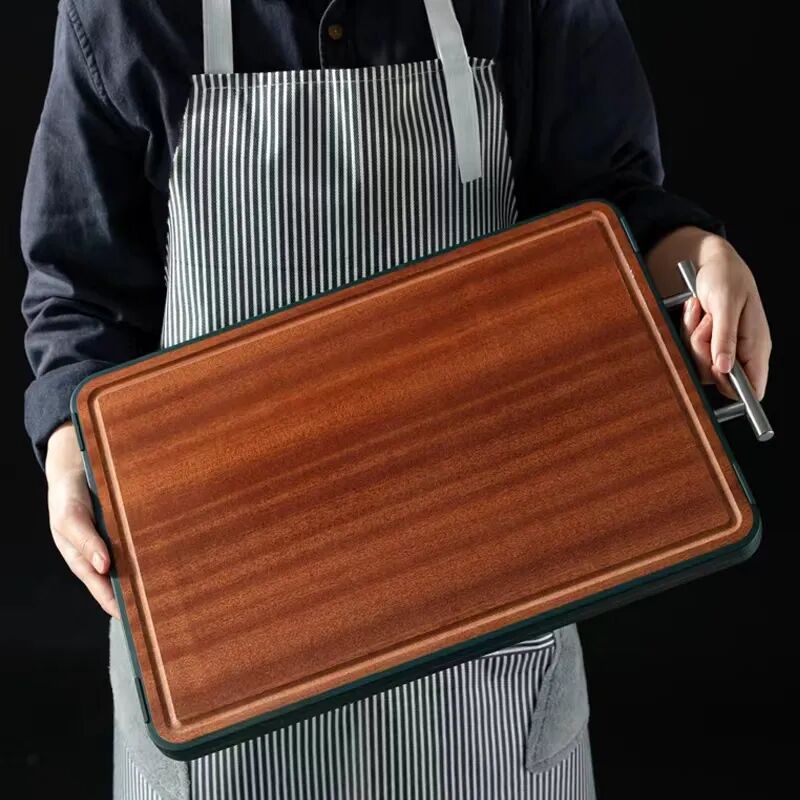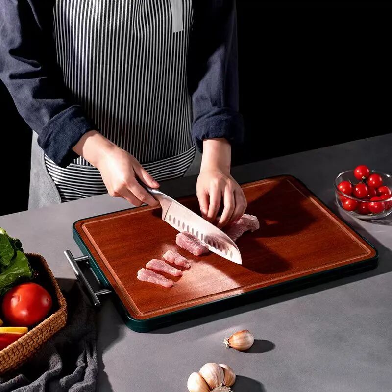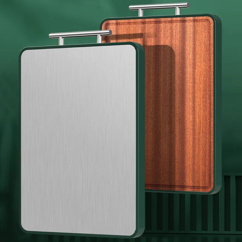 一面是耐砍耐剁的非洲进口乌檀木,一面是抑菌干净又卫生的的304不锈钢。