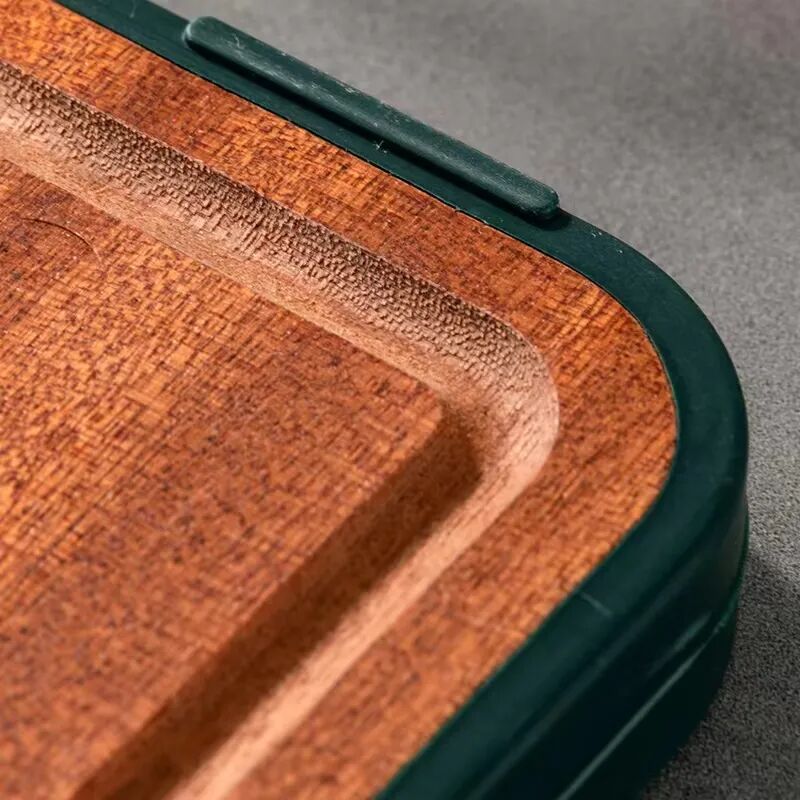 砧板的四面采用了环保软包胶技术,不仅增加了砧板的质感,圆润厚实,还贴心的设计了四个突起,无论用哪一面,背部都不接触台面,干净又卫生!
