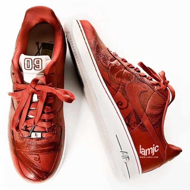 鞋面整体使用了 Booba 个人最爱的红色,材质则使用了纹路明显的粒面皮来彰显质感。细节方面展现了与 Booba 个性相符,硬核且直接的设计语言:鞋舌的"09"代表了他在当时即将发布的专辑《0.9》。鞋垫与鞋底出现的国旗图案则是象征自己对祖籍——塞内加尔的致敬。