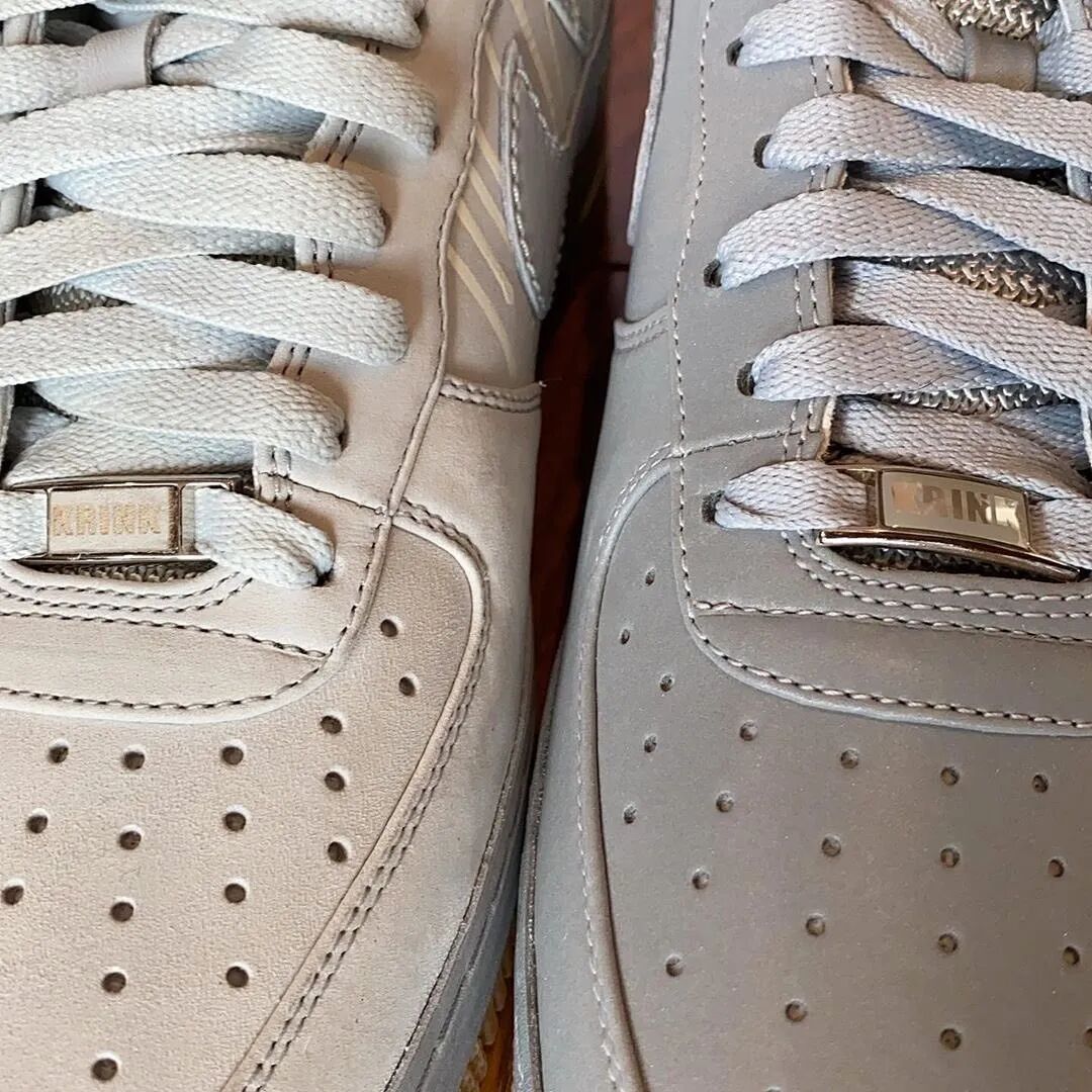 2008 年,KRINK 与 Nike 为「1WORLD」企划联手打造了这双最为"闪耀"的 AF1 —— 覆盖 3M 反光材质的银色鞋面搭配 KRINK 标志性的 "滴画" 设计,使得整双鞋看起来如同刚被颜料滴洒一般充满个性。