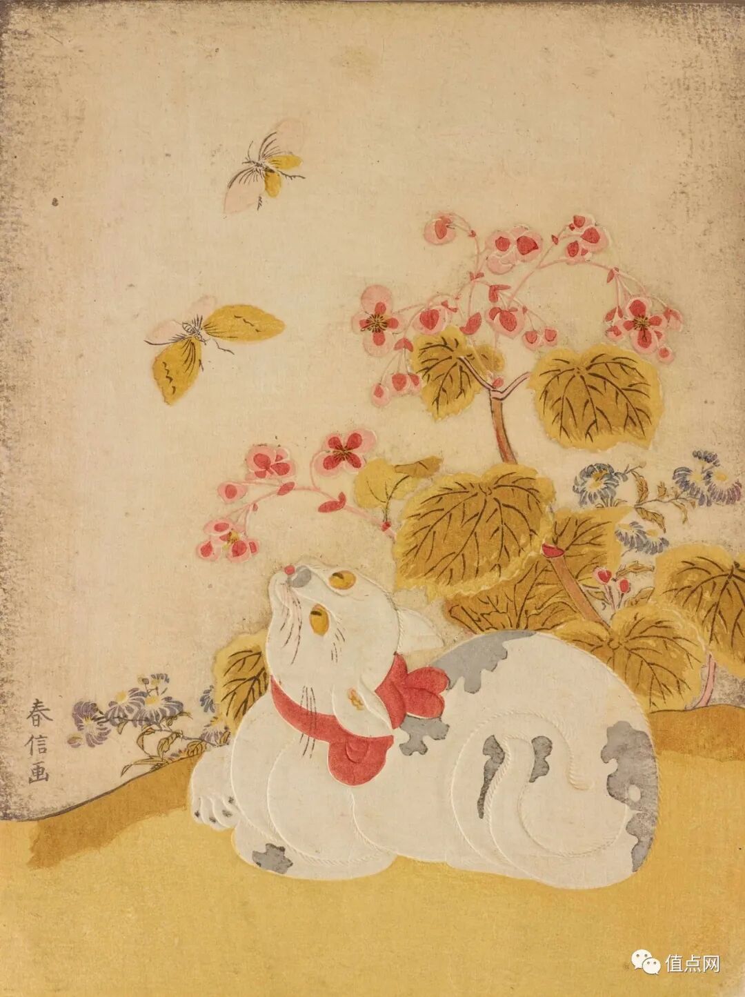 明和2-7年(1765-70)|铃木春信《猫に蝶》