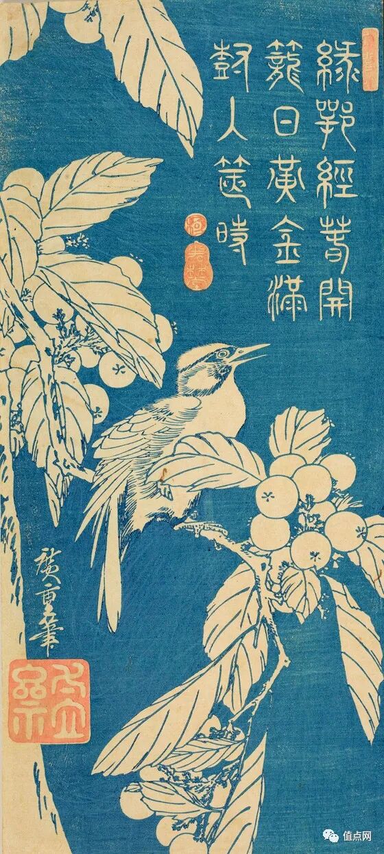 天保3-6年(1832-35)|歌川广重《枇杷与小禽 》