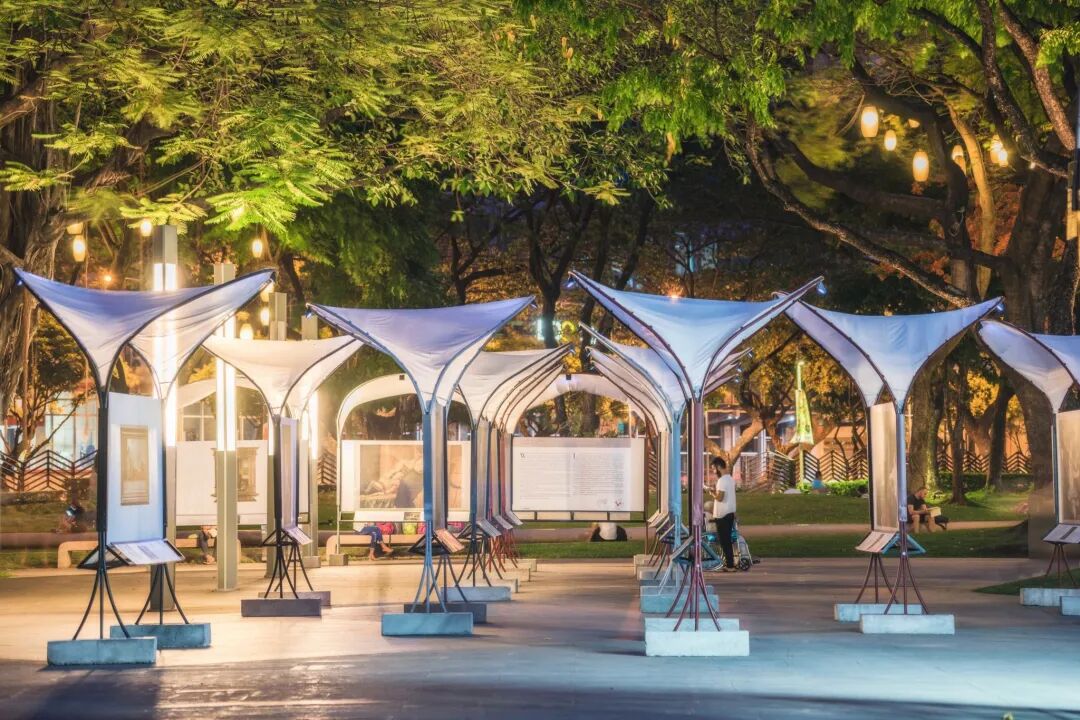 菲律宾普拉多博物馆是一个巡回展览,旨在将西班牙最重要的国家博物馆之一的博物馆体验带入菲律宾的公共空间,建筑由帆状檐篷构成,形状源自熟悉的拱门和拱顶的简化形式,这是一个优雅、简洁的解决方案,既有吸引力又具有必须适应周围环境的展览所需的实用性。