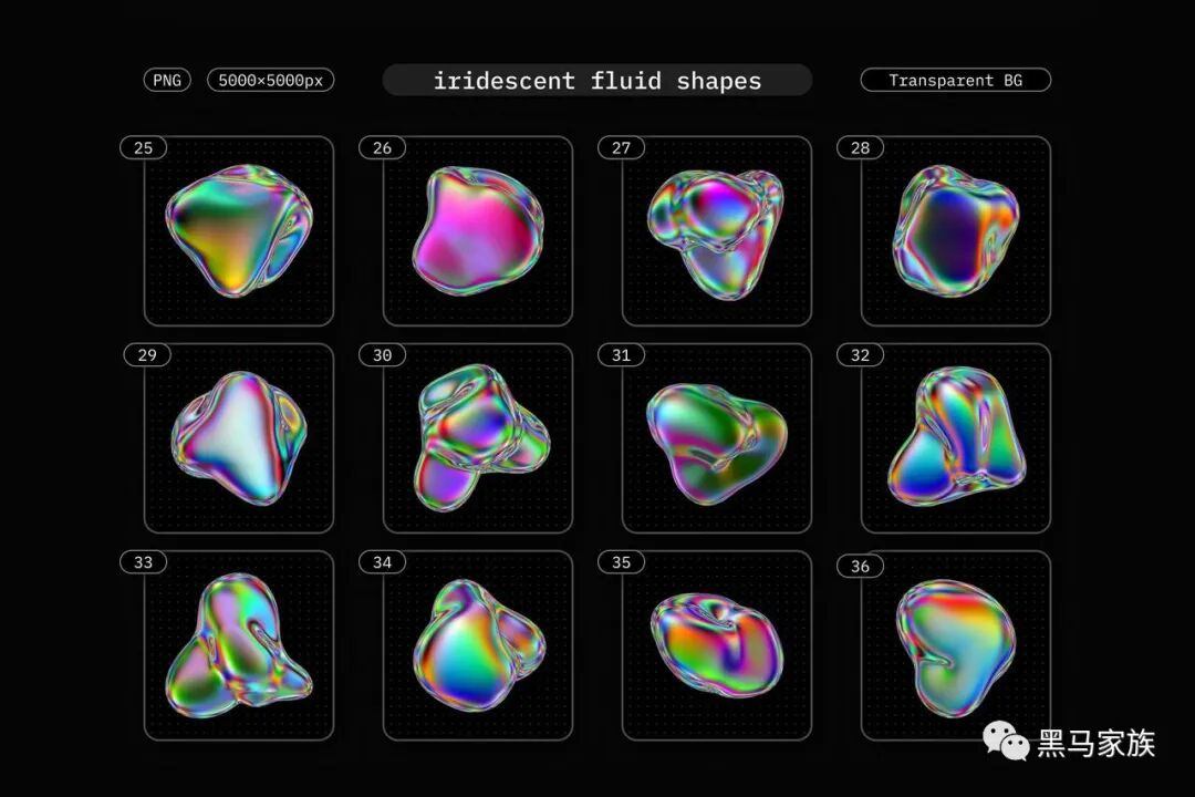 面性流体特点:用气泡、晶体、液体等绘制出的动态扭曲的面性形状。极大的增强有机拟态视觉效果。