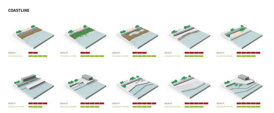同时,项目将设计本身视为动态过程,在设计策略中以功能叠加的思路取代传统的空间塑造思路。我们将景观功能空间模块化,通过模块组合塑造空间,使景观功能得以顺应城市发展的需求而更新变化。同时,通过对社会需求和城市发展的研究和预测,我们提出开放的设计管理策略(设计时序管理、接口设计控制等),提升了开发建设活动的应变性。
