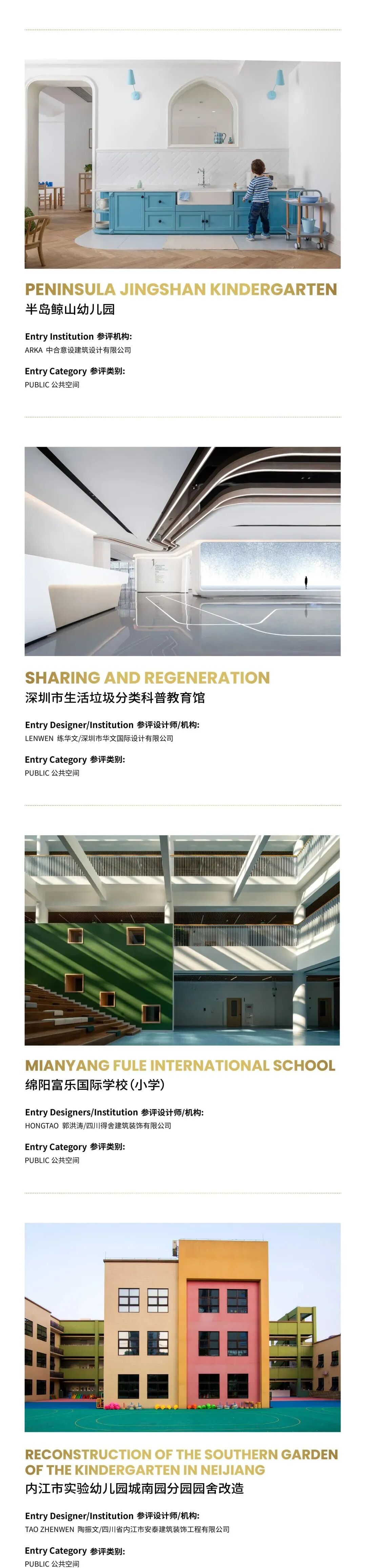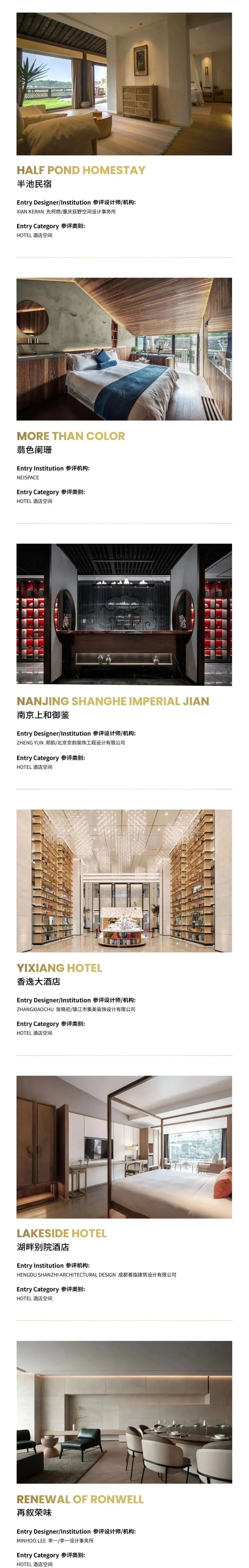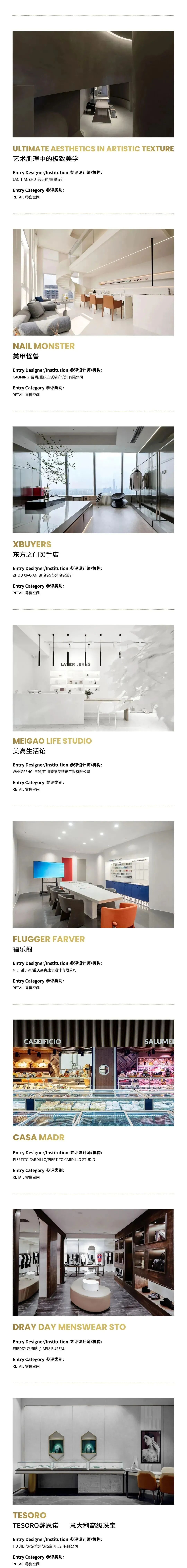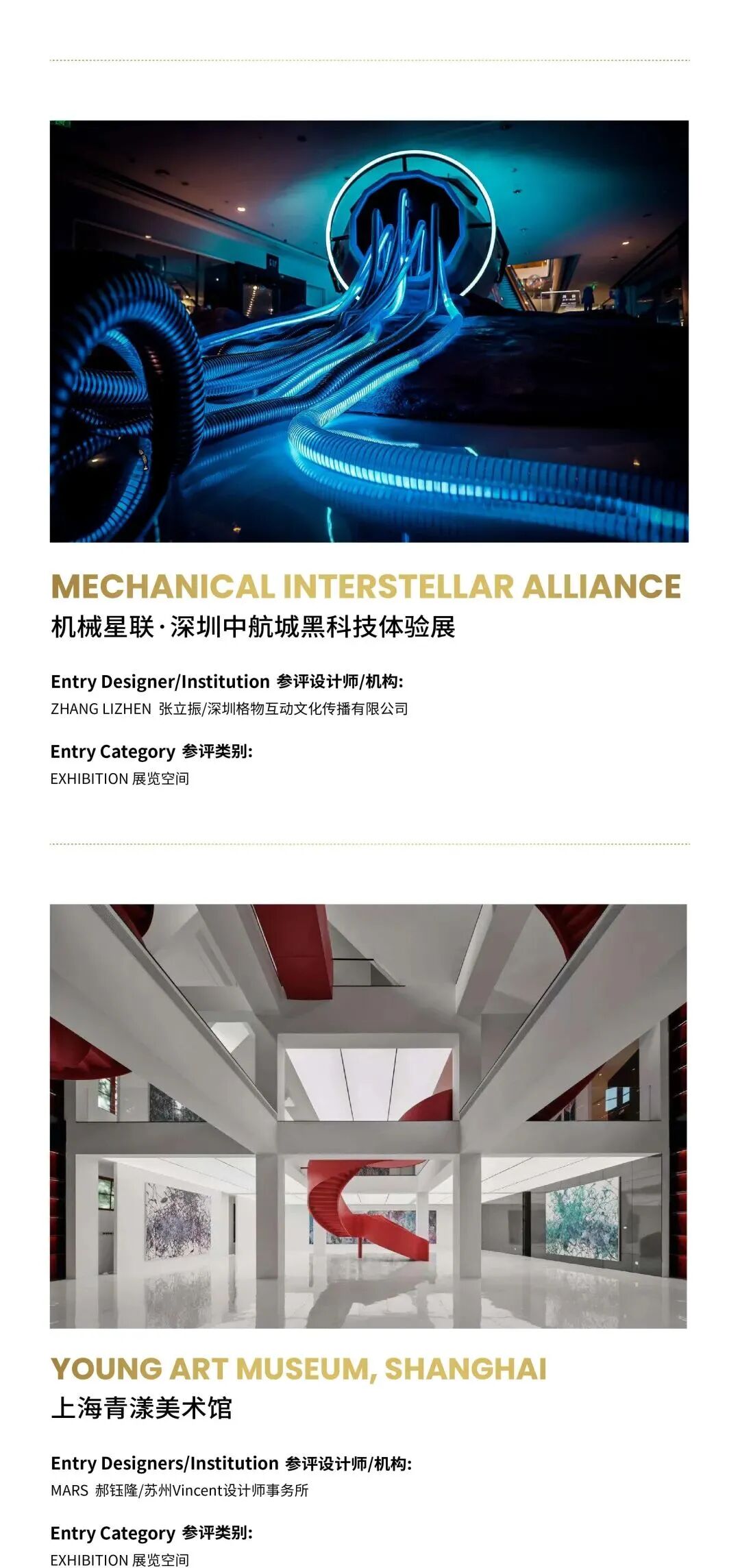评审委员会根据理念、美学、创新、技巧共四个评审标准从所有参评作品中评选出荣获“2021GRP中意国际设计金指奖·优胜奖”的获奖作品。该奖项自4月21日开启线上参评通道,截至9月15日所有参评作品收集完毕。经由近两个月的评审和筛选,今日2021GRP中意国际设计金指奖·优胜奖”获奖名单正式公布!本次2021GRP中意国际设计金指奖·优胜奖”获奖名单由来自售楼空间、会所空间、样板空间、住宅空间、零售空间、办公空间、餐饮空间、酒店空间、展览空间和公共空间共10个空间类别的204套作品组成。(*以下参评设计师/机构排序不分先后)