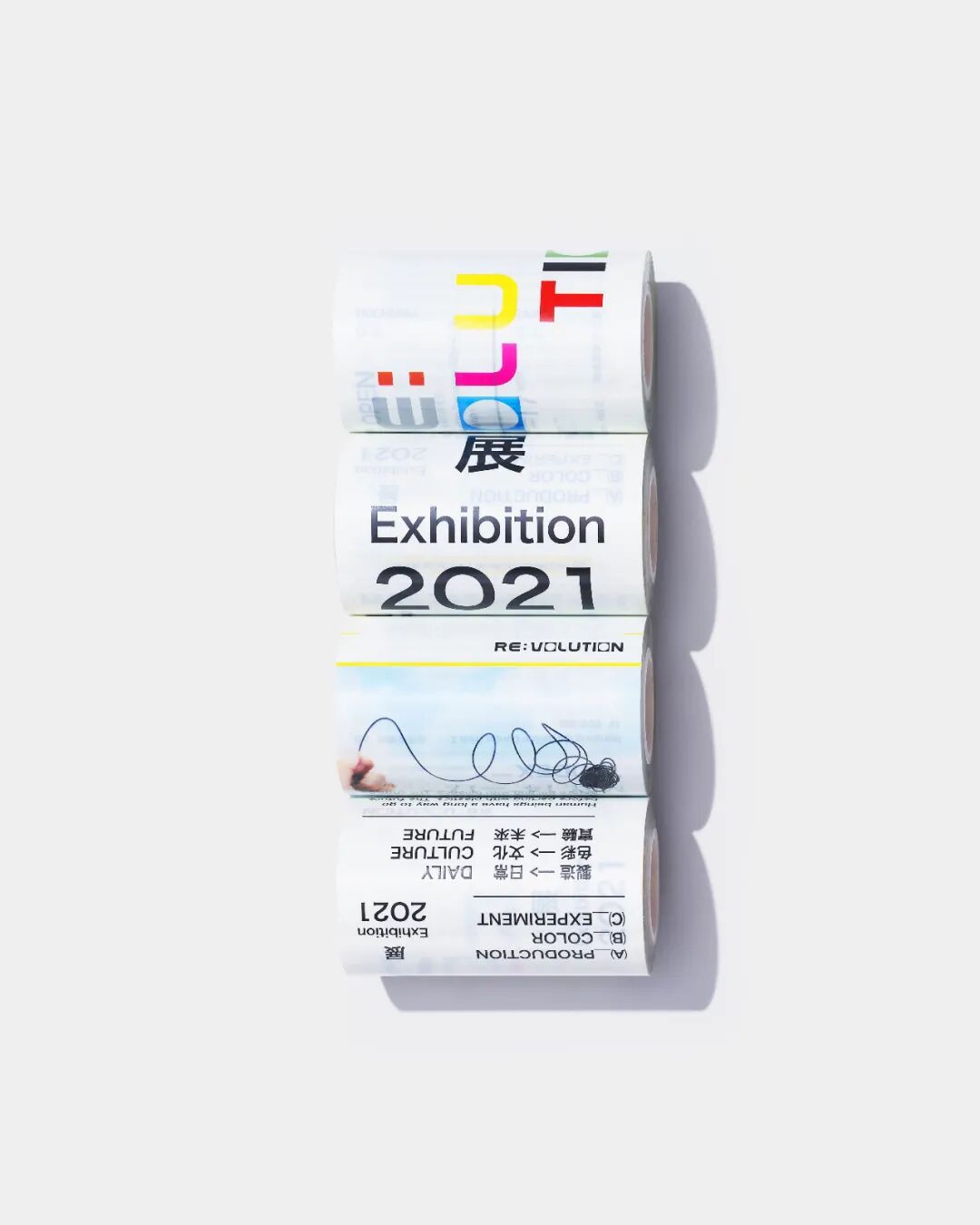 RE:VOLUTION是一个重新认识塑料的展览,透过(A)_PRODUCTION制造/(B)_COLOR色彩/(C)_EXPERIMENT实验三个视角,对应到日常生活,希望以塑料不同的样貌,开启大众更多元的想像,进而鼓励思考塑料的可能。