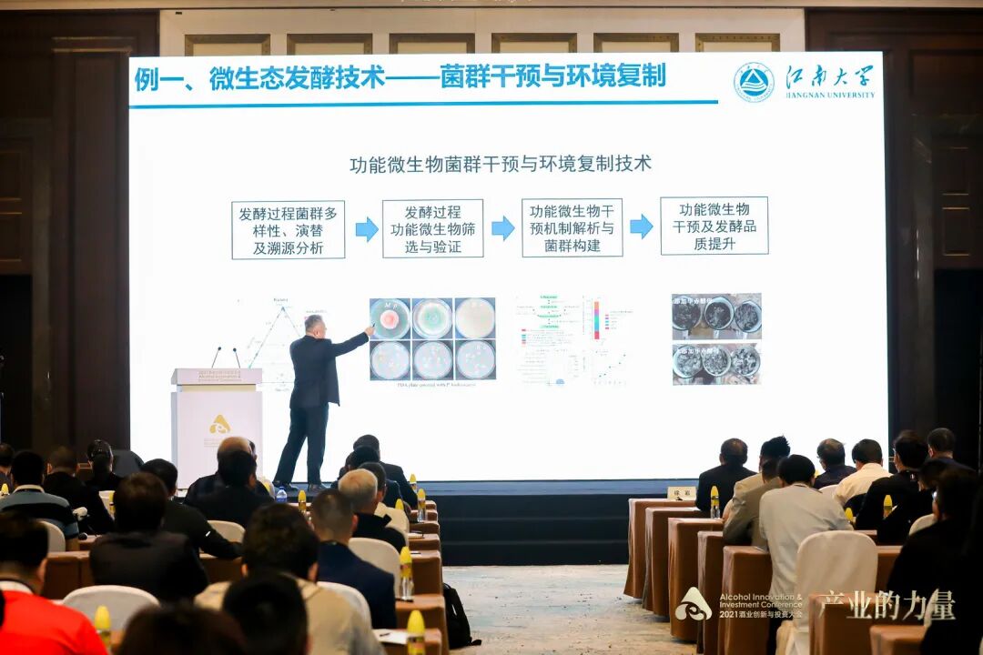 在特邀大会主席、江南大学副校长徐岩徐岩的观点里,人与酒天然就是和谐的。“白酒是天人合一的过程,我们在发酵中靠天然大环境,也靠小环境中的微生态,但最终都要通过人的技术和工艺流程,也就是匠心精神来调节这些微生物,这就是天人合一。”