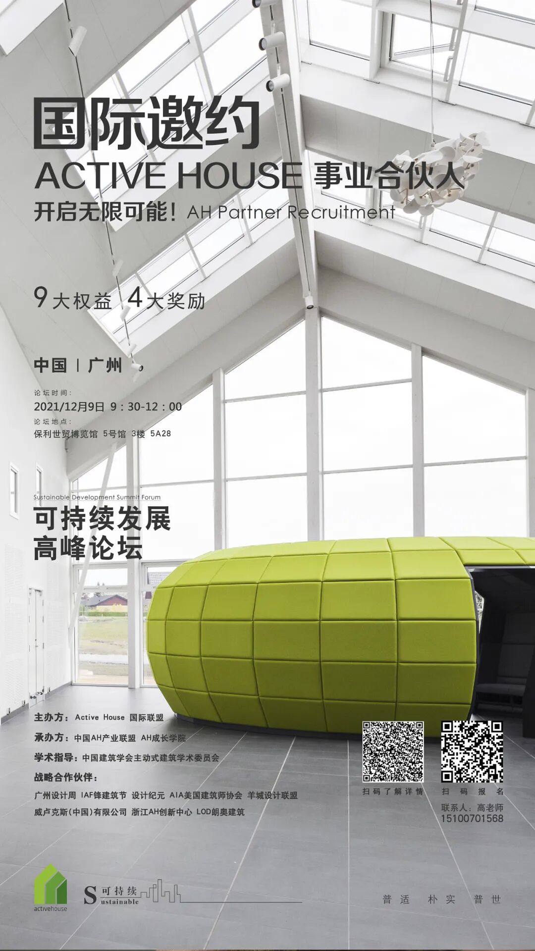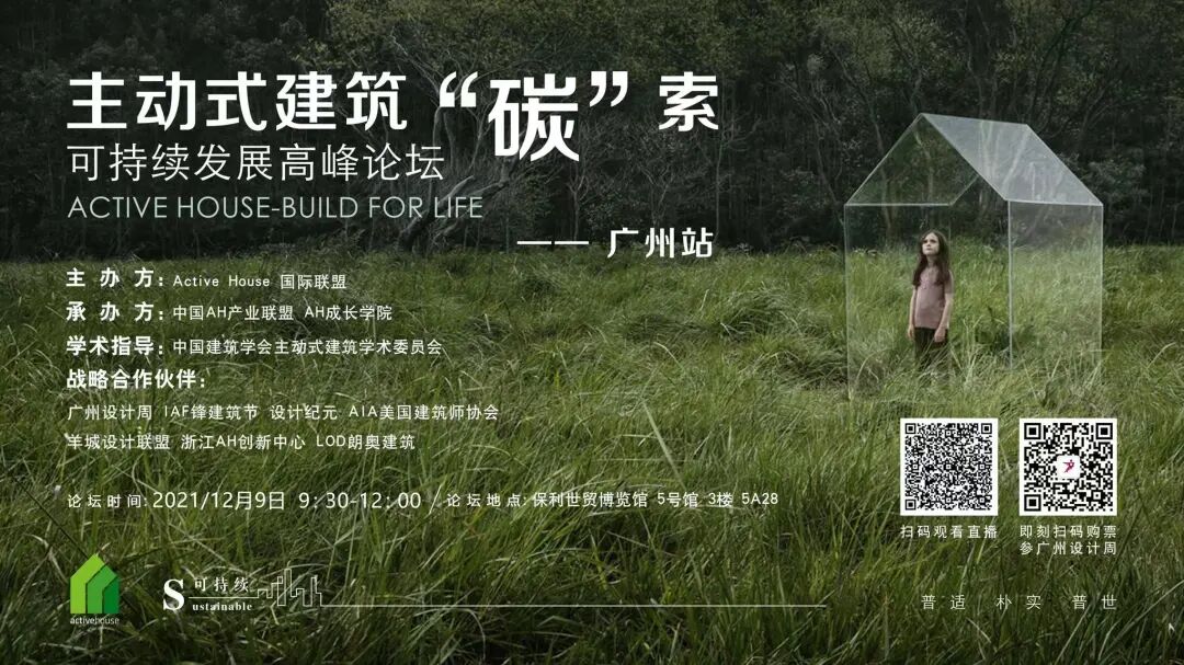 2021 Active House-Build for Life 主动式建筑“碳”索可持续发展高峰论坛将于12月9日上午在广州设计周保利馆3楼举办。