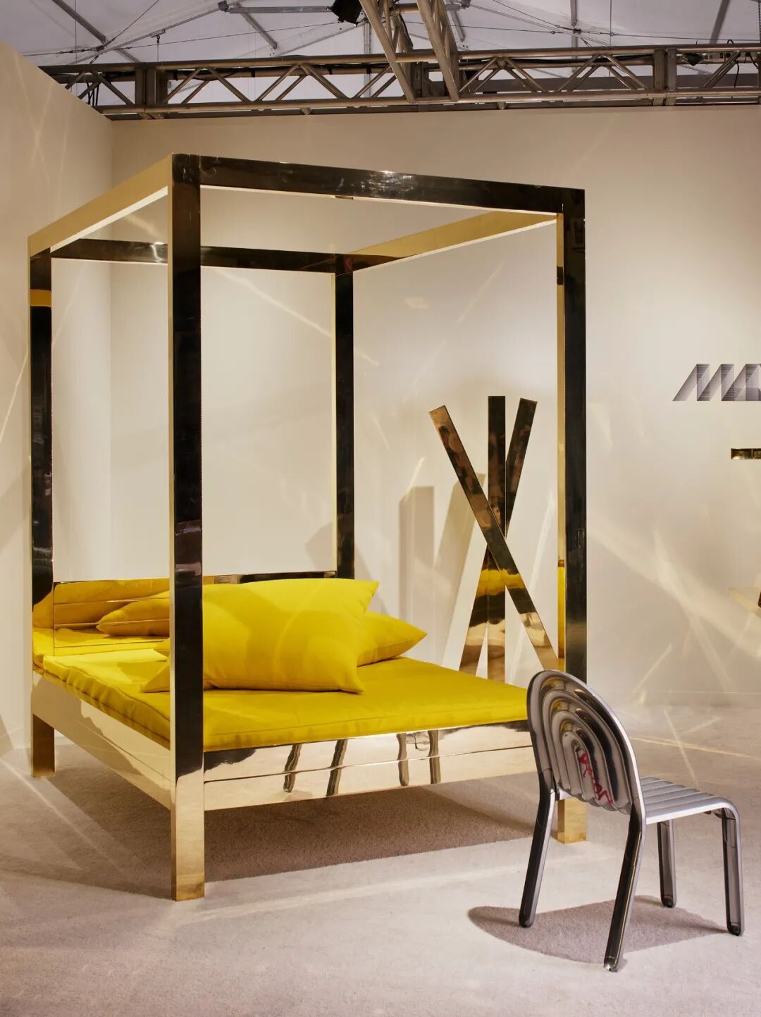 这一系列主打“超级抛光”的作品包括黄铜桌、书架和衣架,均是在英国本地采用实心黄铜挤压件手工制作而成。