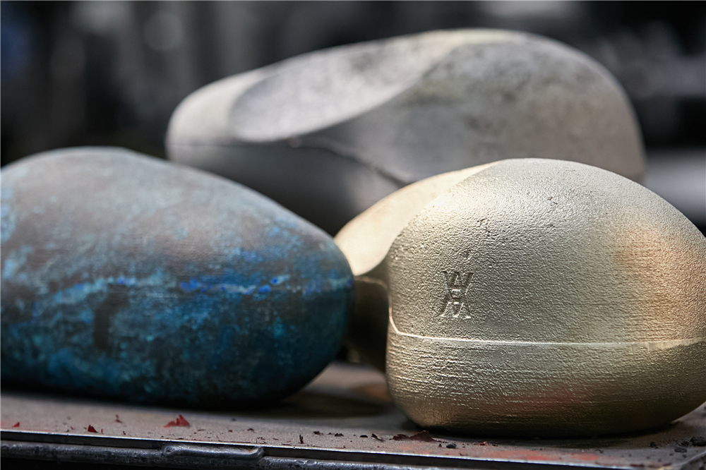 经过强压工艺锻造的黄铜“岩石”泛出怀旧的铜绿光泽,正传递了时光刻画的痕迹。
