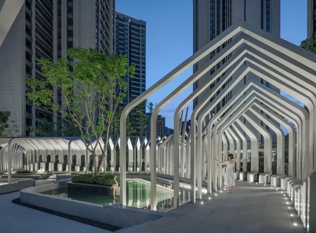 设计秉承金地高端产品理念,以充满序列性与细节感的廊架、景墙联结建筑与景观,融入对自然的感悟与对城市的体悟,展现现代简约且彼此渗透交流的艺术花园。