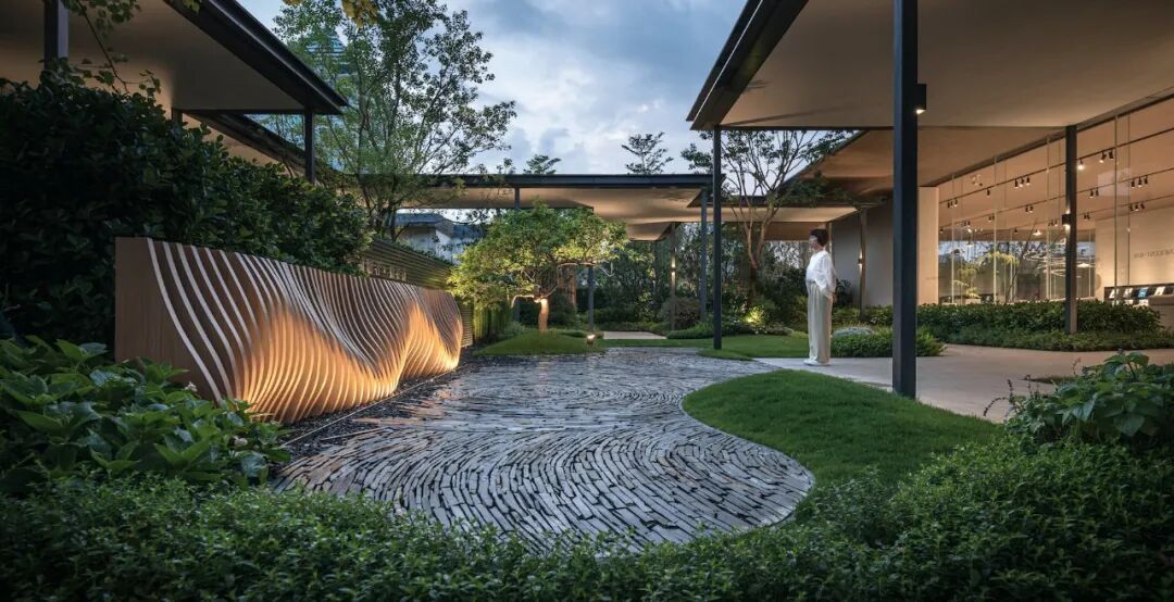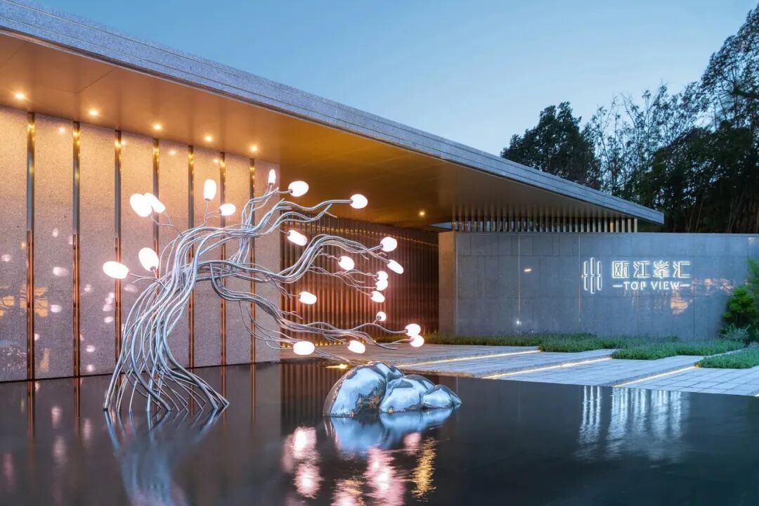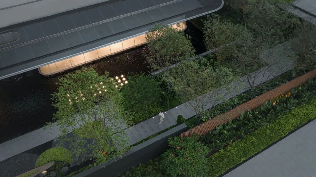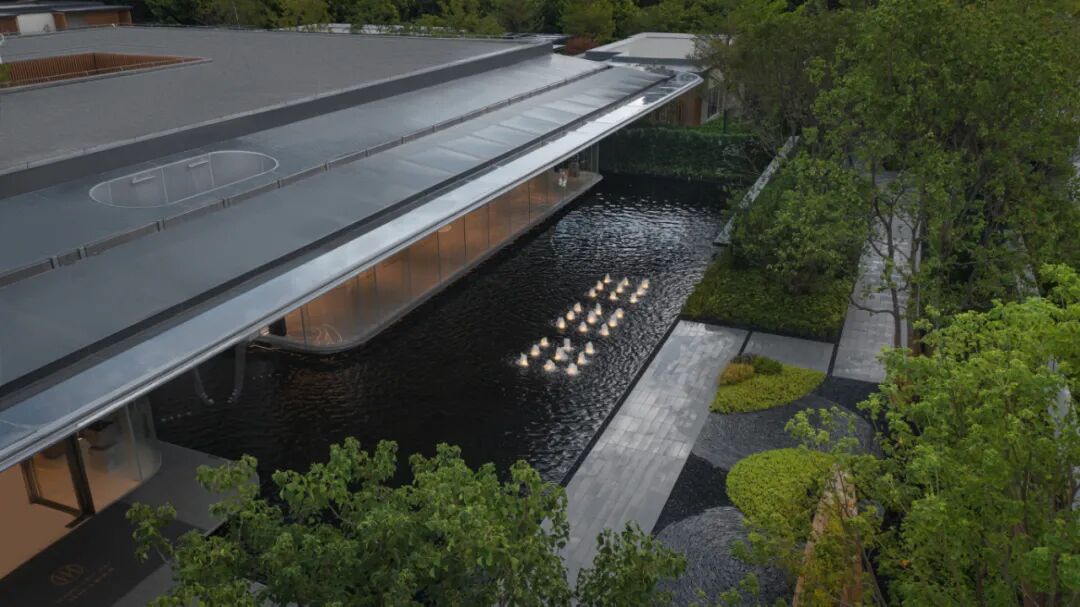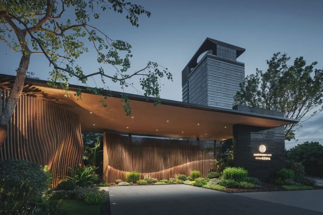 设计取源岭南文化及邻近两山两河的优越生态资源与气度灵韵,将山水引入园,强调度假氛围、场景质感、精致细节与艺术呈现,让居者生活于岭南山水诗意园居,邂逅现代东方美学意境。