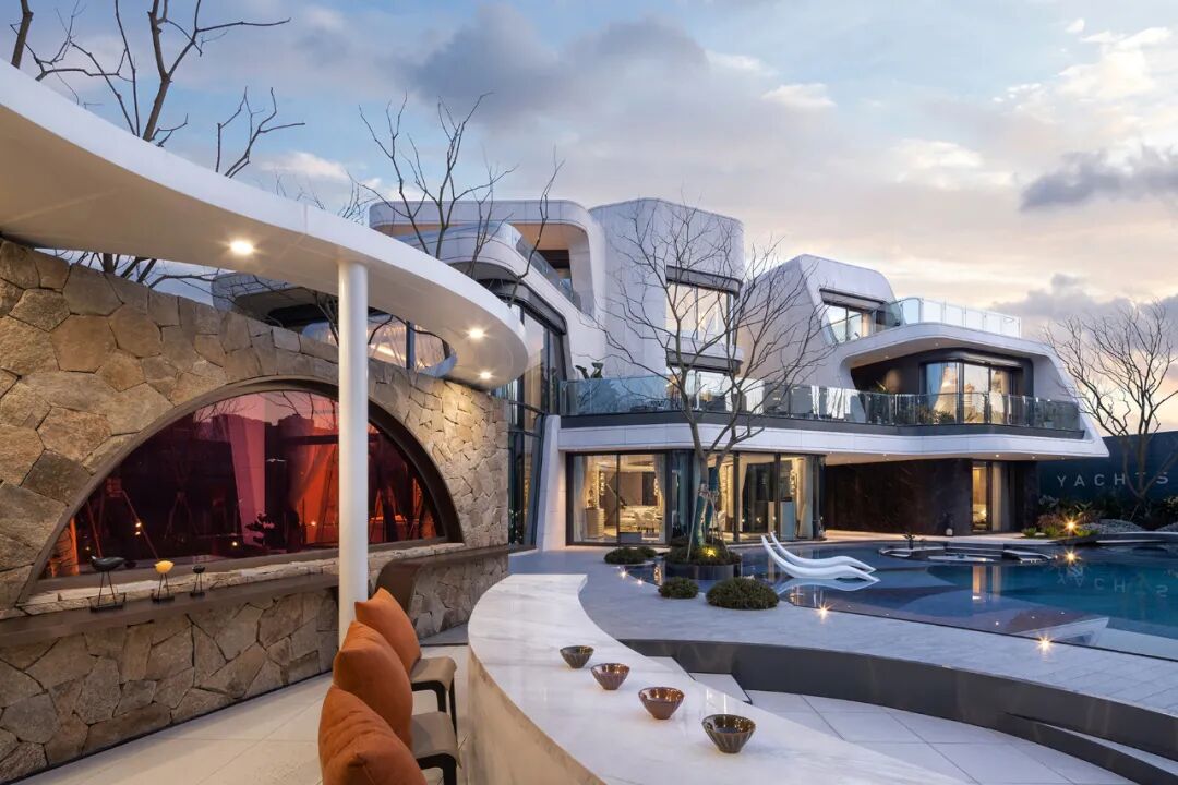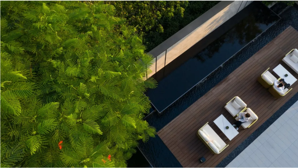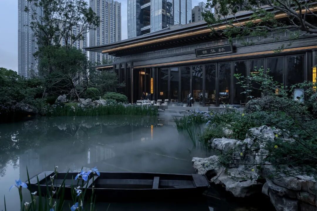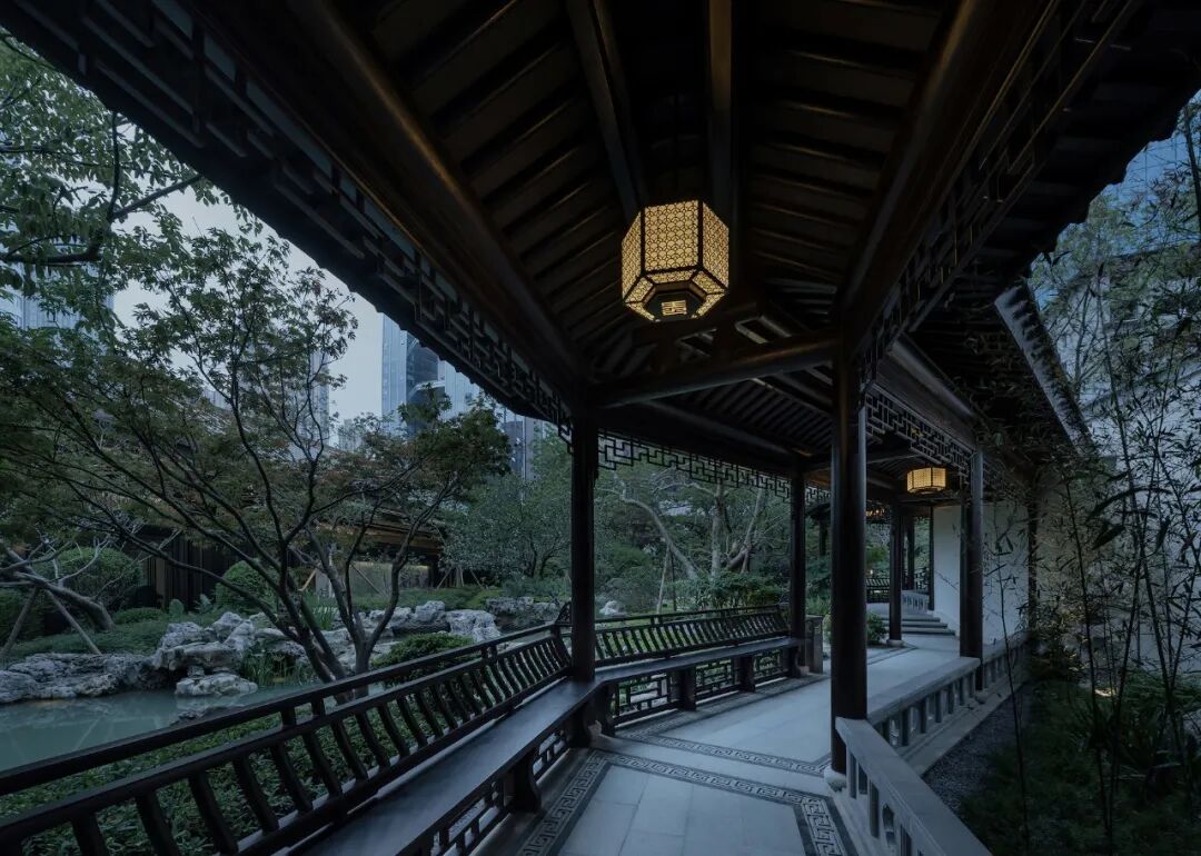 设计取源岭南文化及邻近两山两河的优越生态资源与气度灵韵,将山水引入园,强调度假氛围、场景质感、精致细节与艺术呈现,让居者生活于岭南山水诗意园居,邂逅现代东方美学意境。