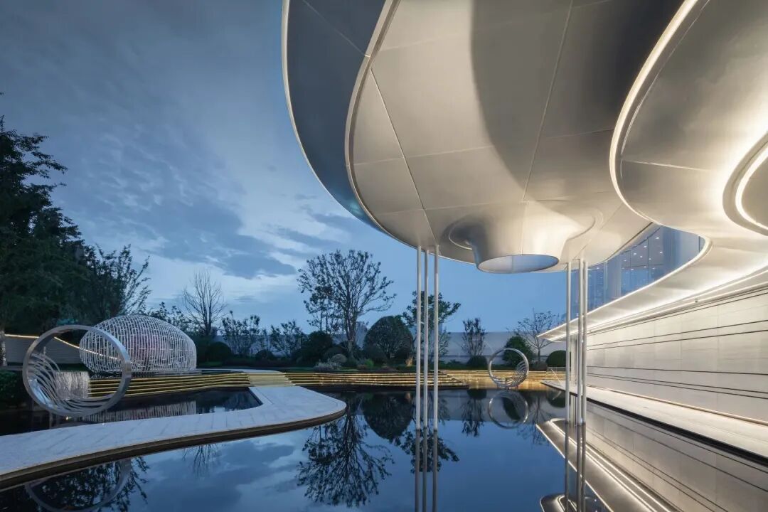 示范区景观引用朱自清先生所作《荷塘月色》为设计意象,以柔美的线条与丰富层次的场地高差营造,缔造一段充满新意自然与宁静至美的湖畔生活旅程,面向湖湾,期待未来大区临湖而居的优越私享人居。