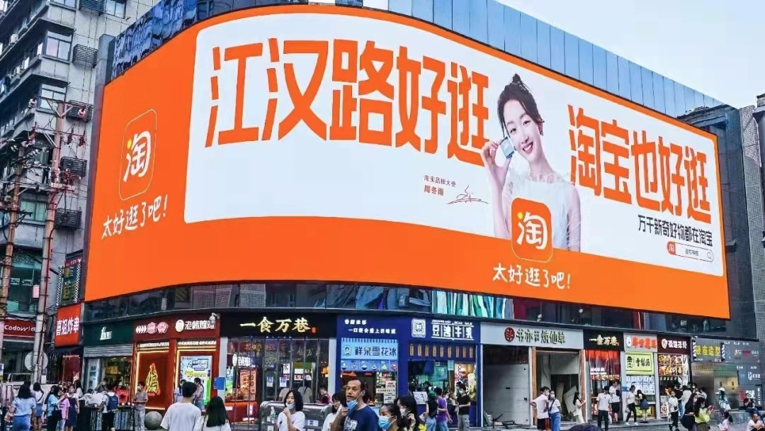 比如,淘宝在这支广告之后在一些知名商业区,就做了一系列的户外传播。