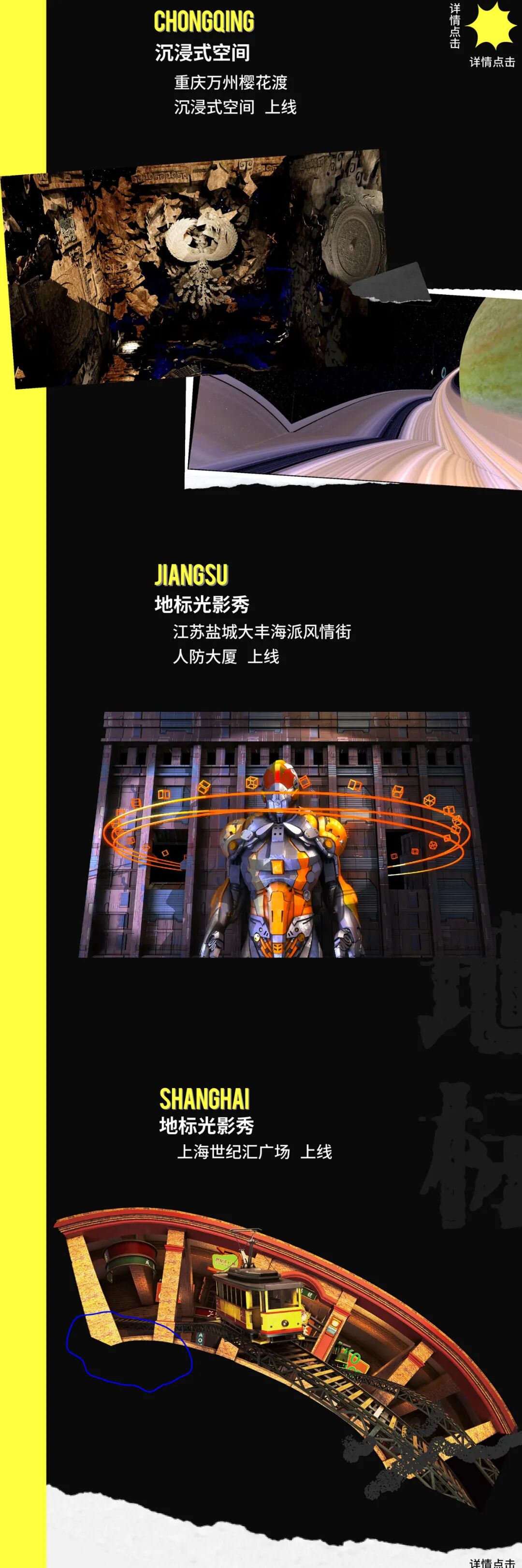 探索数字与创意,链接人文与情感。以“不止于内容,更超越体验”为创作理念。将创意、科技、艺术与文化相结合,通过光影、影像、交互、演艺、造景等,打造沉浸式体验,融合真实与虚拟、自然与数字、激发一系列好奇及链接关系,实现视听有冲击、身体有互动、情感有共鸣,创造难忘的数字创意沉浸式文化体验。