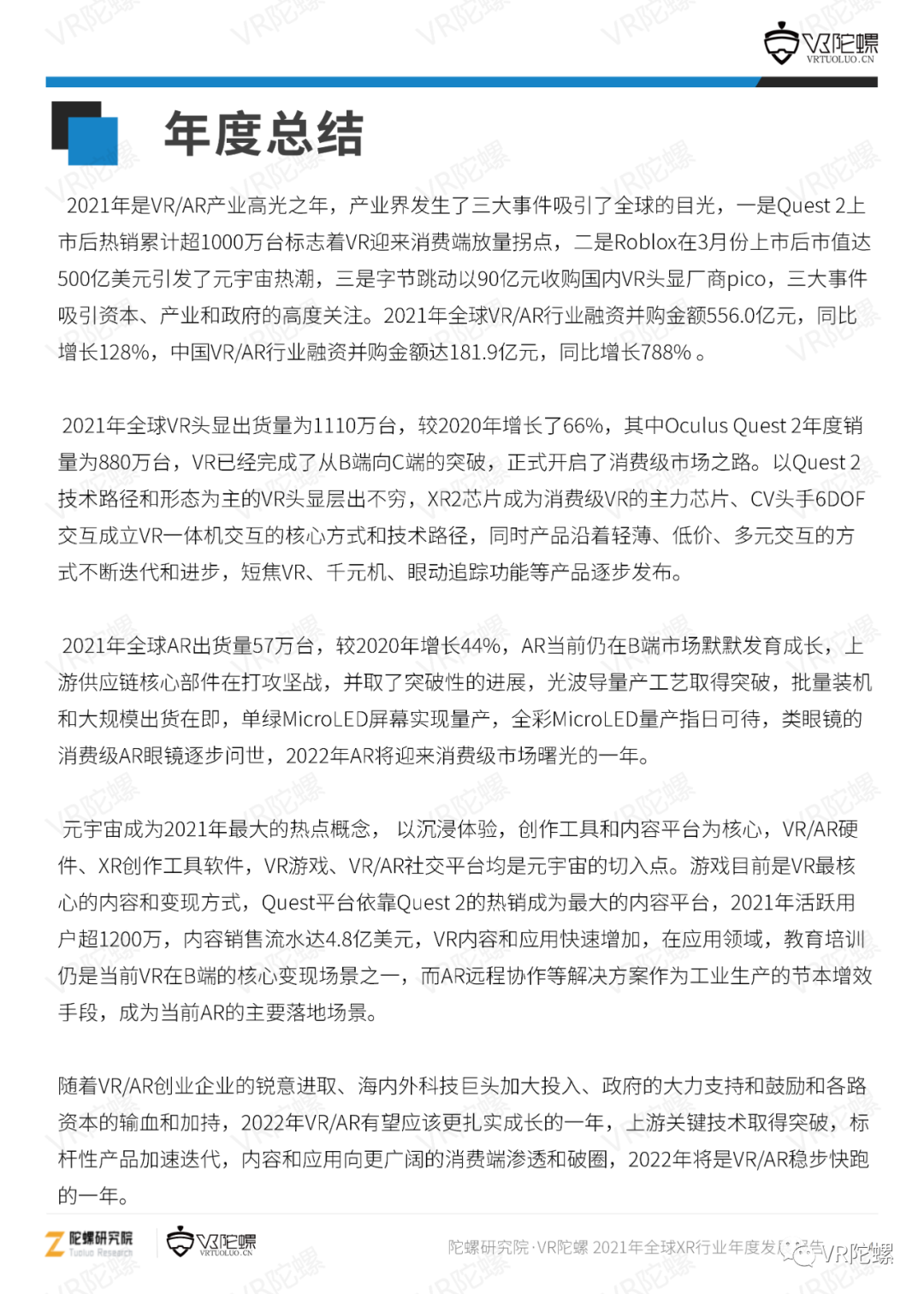 /2021年全球VR/AR行业年度发展报告|VR陀螺