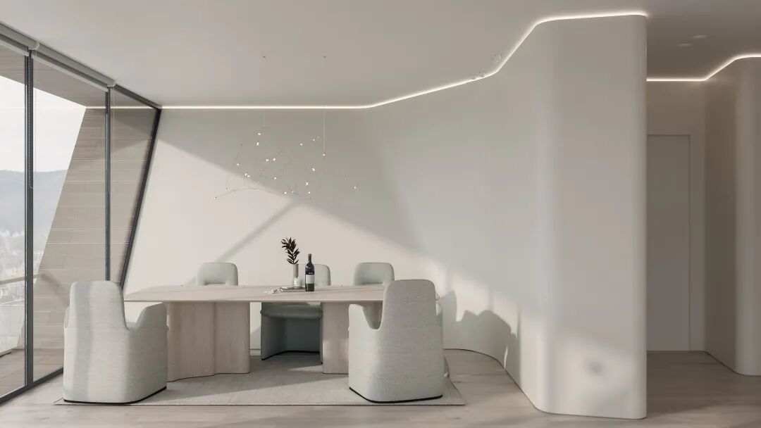 通过软化物品的结构,打造出柔软无边界的家具陈设和设计,多以弧形、无棱角的设计作为具体表现形式。