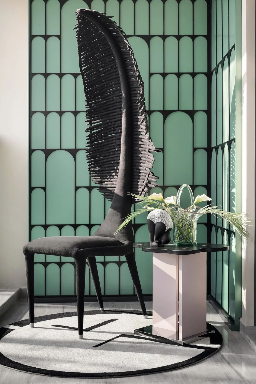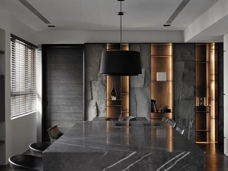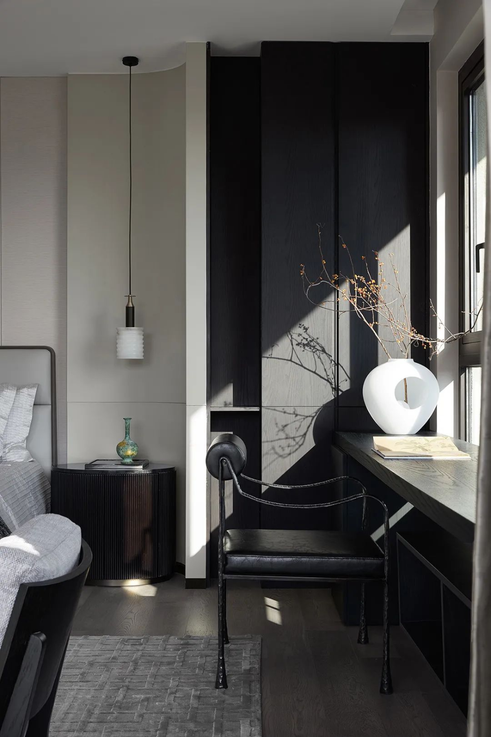 在上文中,已经说了黑色在黑色框架中的作用,同时在家具的陈设、装饰元素中,也可以看到它的身影,可以说黑白灰几乎是室内空间中永恒的,最受欢迎的3类颜色。